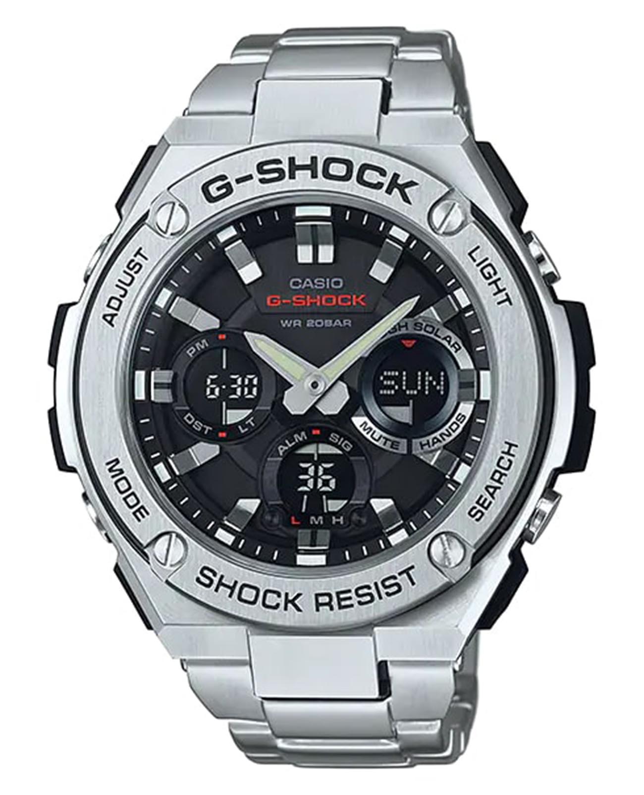 Противоударные, спортивные мужские часы в серии G-STEEL в стальном корпусе Casio G-Shock GST-S110D-1ADR (GST-S110D-1A), электронный механизм с высокой точностью. Класс водозащиты: 200 метров, позволит плавать, нырять и заниматься другими водными видами спорта. Корпус часов изготовлен из стали, серебристого цвета.