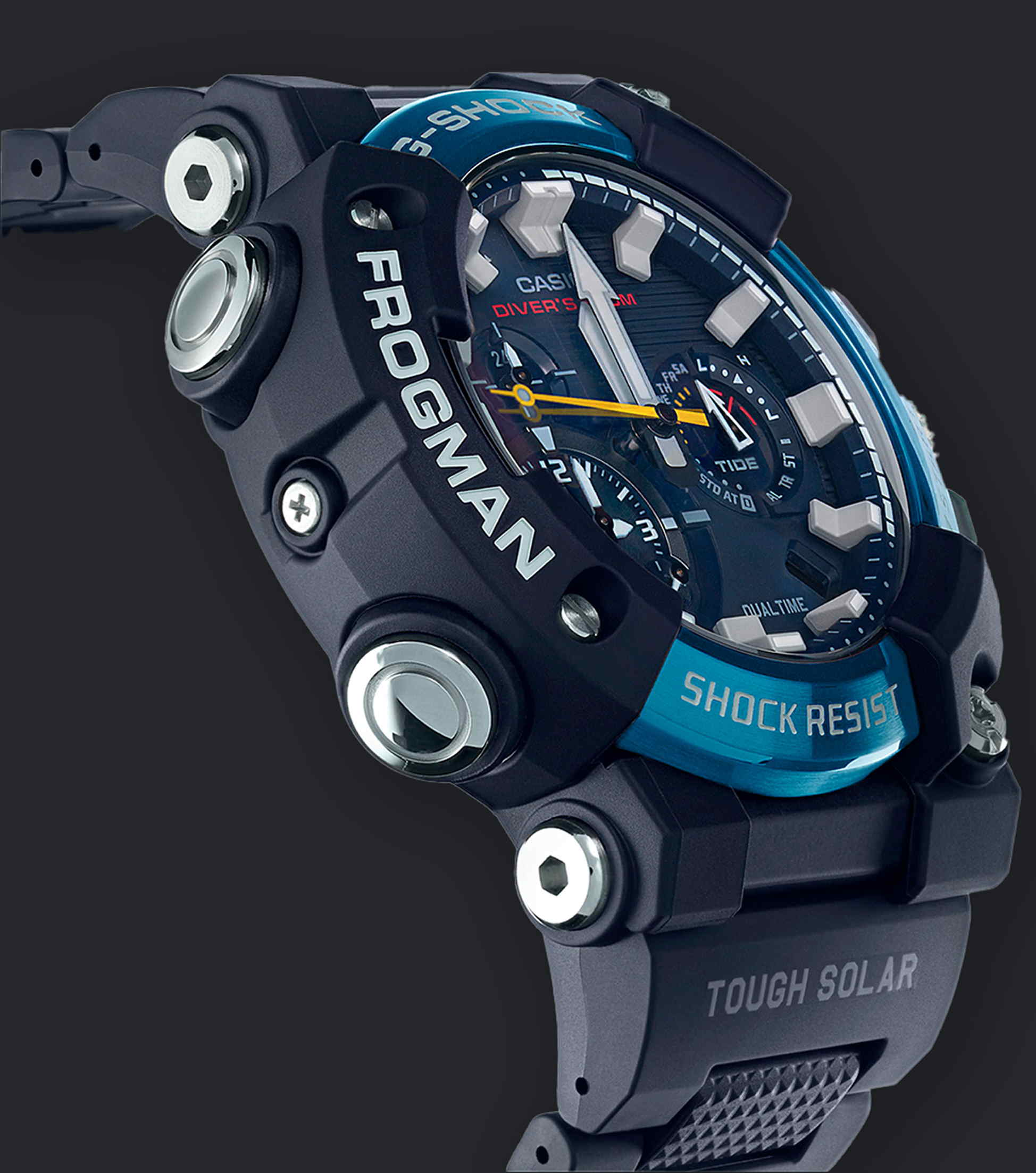 Часы Casio G-Shock GWF-A1000C-1AER - модель из лимитированной серии Frogman для дайверов со стрелочной индикацией времени и ассиметричным дизайном циферблата, который является отличительной чертой линейки часов Frogman с момента ее запуска в 1993 году.