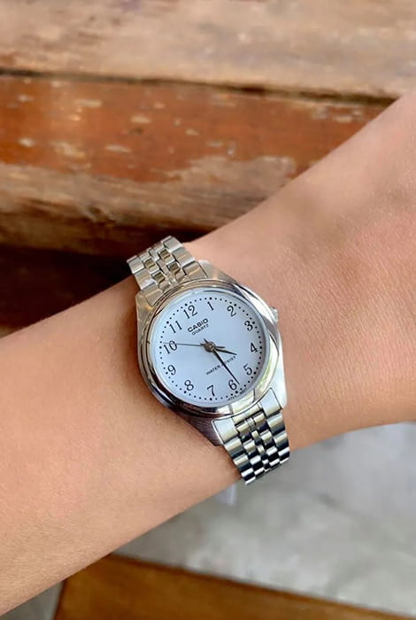 Японские женские часы  Casio LTP-1129A-7B изящно смотрятся на запястье, они привлекают классическим исполнением и правильной геометрией. Минималистичная модель станет отличным решением для любого случая: на работу, переговоры с деловыми партнёрами, прогулку с друзьями или праздничный вечер. Отсутствуют лишние детали, что позволяет часам быть актуальными на долгие годы. Корпус выполнен из нержавеющей стали 316L, отличающейся долговечностью и устойчивостью к повреждениям и царапинам. Модель комплектуется надёжным механизмом, точность хода которого составляет +/- 20 сек/мес.Калибр механизма — 1330. Стальной браслет. Водонепроницаемость 30 метров, позволит защитить корпус от случайных брызг или капель дождя.