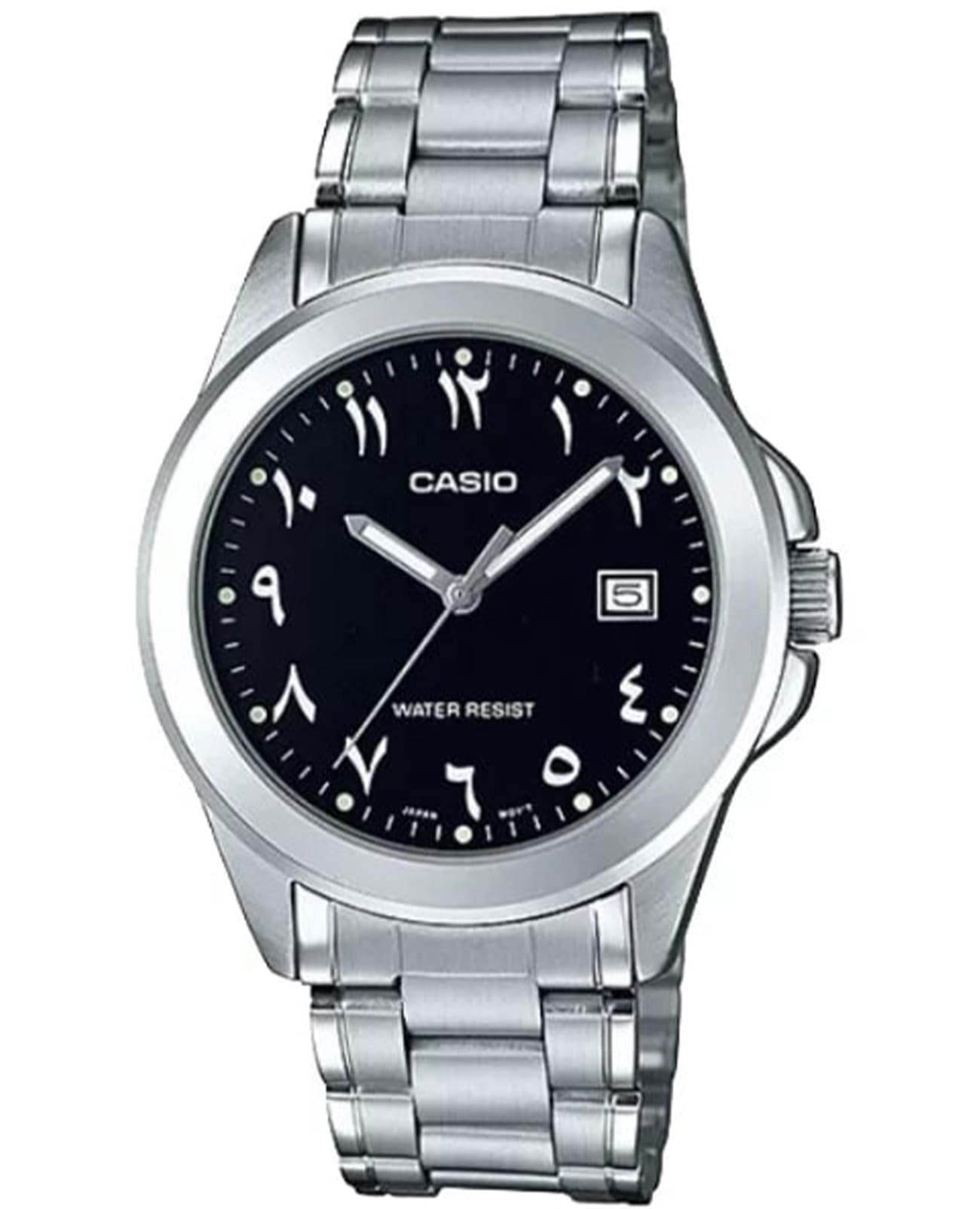Японские мужские наручные часы с минеральным стекломМинеральное стеклоМинеральное стекло представляет собой искусственно выращенный минерал кварца. Такое стекло отличается особой устойчивостью к повреждениям и царапинам. Уступает по некоторым качествам сапфировому стеклу. Casio Collection MTP-1215A-1B3, кварцевый механизм с высокой точностью. Класс водозащиты: 30 метров, позволит защитить корпус от случайных брызг или капель дождя. Корпус часов изготовлен из стали. Стальной браслет на раскладной застёжкеРаскладная застёжкаТакой тип застёжки используется только на браслетах из металла. Она никогда не раскрывается полностью, происходит разделение на 2 и более частей. Раскладывающая застёжка снизит вероятность потери часов к минимуму.. Окошко даты находится в положении 3 часа. Стрелки с люминесцентным покрытиемЛюминесцентное покрытиеПозволяет считывать показания времени в темноте. Производители наносят на стрелки, часовые индексы, безель или поверхность циферблата светонакопительный состав, дающий холодное свечение..