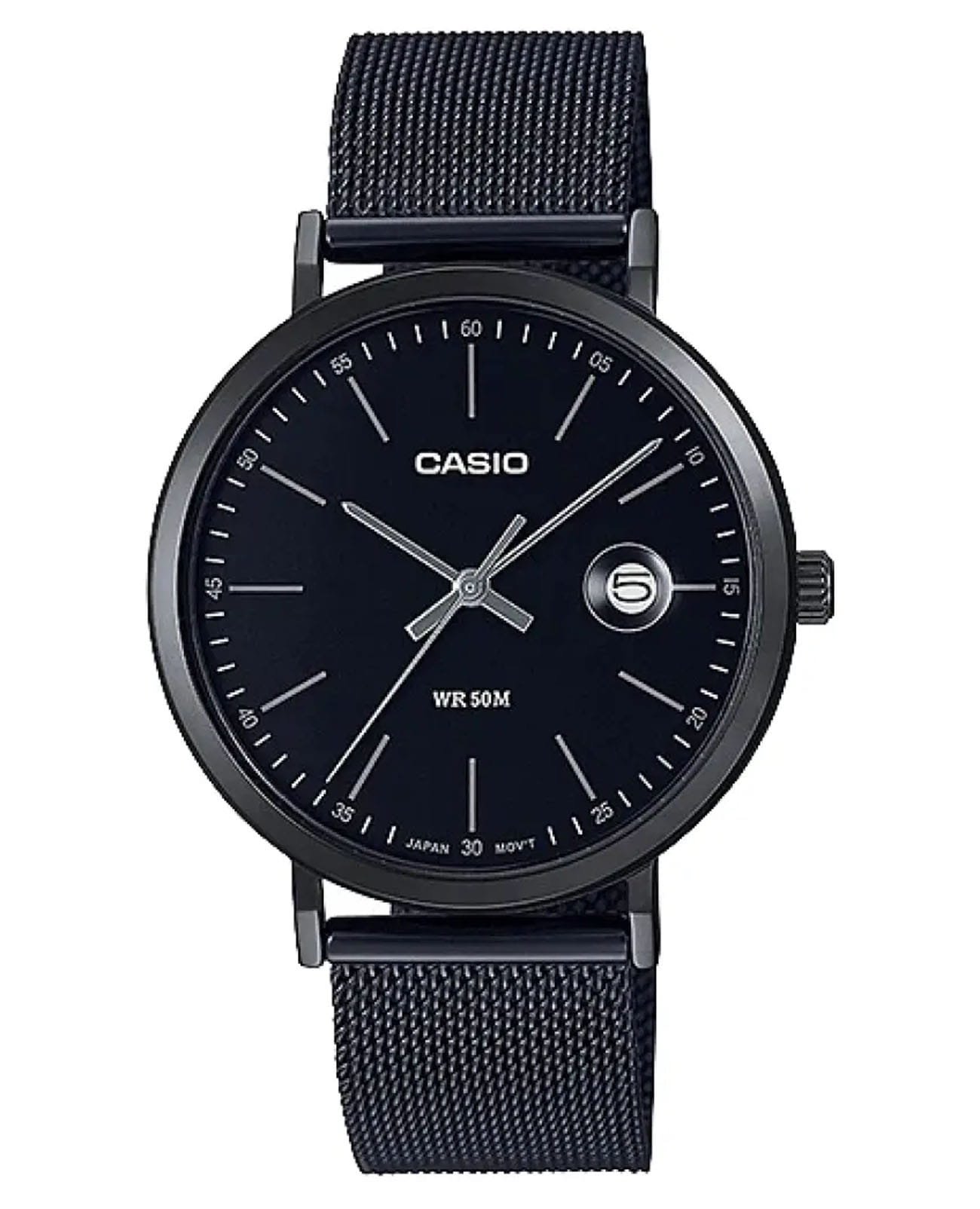 Японские мужские часы с минеральным стекломМинеральное стеклоМинеральное стекло представляет собой искусственно выращенный минерал кварца. Такое стекло отличается особой устойчивостью к повреждениям и царапинам. Уступает по некоторым качествам сапфировому стеклу. Casio Collection MTP-E175MB-1E, кварцевый механизм с высокой точностью. Корпус часов изготовлен из стали с IP-покрытиемIP-покрытиеМетод ионного напыления. Демонстрирует повышенную устойчивость к истиранию, окислению и химическим веществам. Под воздействием высокого давления и температуры около 1500°C молекулы металла надёжно соединяются с частицами корпуса часов.. Метки в виде штрихов. Окошко даты находится в положении 3 часа. Рифленая заводная головка. Класс водозащиты: 50 метров, позволит защитить корпус от случайных брызг или капель дождя. Стальной браслет миланского плетения с IP-покрытиемIP-покрытиеМетод ионного напыления. Демонстрирует повышенную устойчивость к истиранию, окислению и химическим веществам. Под воздействием высокого давления и температуры около 1500°C молекулы металла надёжно соединяются с частицами корпуса часов. на раскладном замкеРаскладной замокДанный вариант застежки используется только на часах с металлическим браслетом. Отличительная особенность такого крепления в том, что длина браслета становится универсальной и вы можете самостоятельно отрегулировать нужный вам размер – застежка просто двигается по браслету часов..