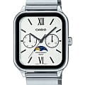 Японские мужские кварцевые часы с минеральным стекломМинеральное стеклоМинеральное стекло представляет собой искусственно выращенный минерал кварца. Такое стекло отличается особой устойчивостью к повреждениям и царапинам. Уступает по некоторым качествам сапфировому стеклу. Casio Collection MTP-M305D-7A2VDF (MTP-M305D-7A2), кварцевый механизм с высокой точностью. Корпус часов изготовлен из нержавеющей стали. Циферблат с метками в виде штрихов. Особенностью модели является наличие индикатора фазы луны над шестью часами по циферблату. Индикатор имеет 4 положения и отображается новолуние и полнолуние, а также растущую и убывающую Луну. Батарейка рассчитана на 3 года. Класс водозащиты: 50 метров, позволит защитить корпус от случайных брызг или капель дождя. Стальной браслет на раскладной застёжкеРаскладная застёжкаТакой тип застёжки используется только на браслетах из металла. Она никогда не раскрывается полностью, происходит разделение на 2 и более частей. Раскладывающая застёжка снизит вероятность потери часов к минимуму..
