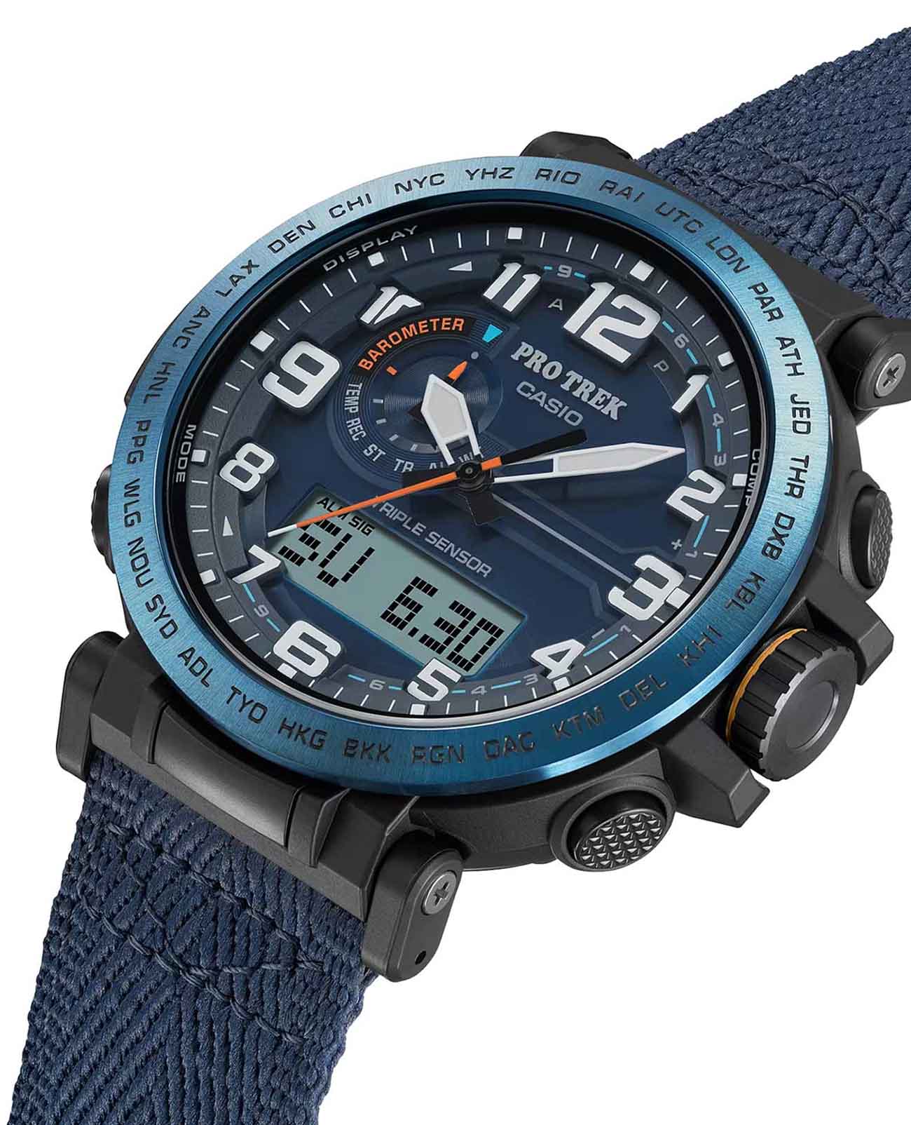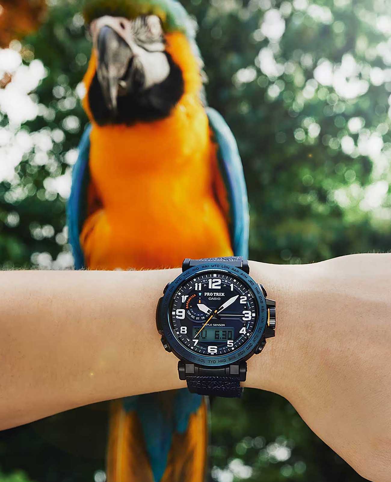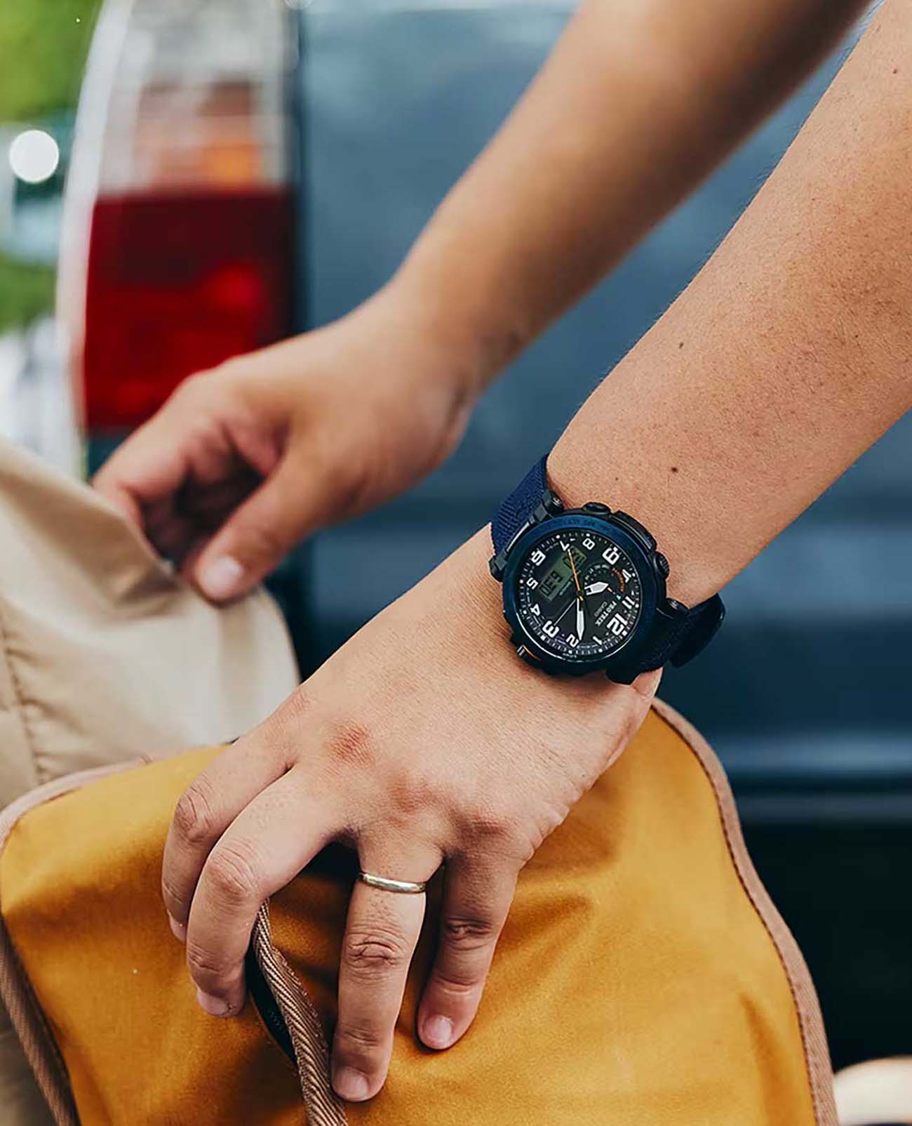 Любое ваше путешествие выйдет на новый уровень благодаря этим часам из коллекции Pro Trek. Casio Pro Trek PRG-601YB-2 для активного отдыха. Корпус и ремешок выполнены из биопластика, который изготавливается из возобновляемых органических ресурсов. Питание от солнечной энергии Tough SolarTough SolarТехнология основана на подзарядке аккумулятора от источника солнечного света, специальная панель улавливает солнечные лучи и преобразует их в энергию для работы часов. Достаточно пары минут нахождения на солнце для функционирования часов в течении суток. - солнечные батарейки большой мощности, индикатор заряда батареи. Функция автоматического сохранения энергии. Время работы аккумулятора без подзарядки приблизительно 7 месяцев, при включенной функции сохранения энергии приблизительно 25 месяцев. Модуль часов рассчитан на работу при низких температурах до -10°С/14°F. Двойная подcветка: циферблат и ЖК-дисплеи подсвечиваются светодиодом, благодаря наличию функции задержки, после отпускания кнопки освещение горит еще несколько секунд. Настраиваемое послесвечение 1,5 или 3сек. Цвет подсветки: белый. Необритовое покрытиеПодсветка NeobriteИспользование светонакопительных составов на основе сульфида цинка или алюмината стронция, яркий свет можно наблюдать на протяжении 6-10 часов после «зарядки» часов около источника света. обеспечивает длительное послесвечение в темноте даже после кратковременного нахождения на свету. 12-ти и 24-х часовой формат времени. СекундомерСекундомерСекундоме́р — прибор, способный измерять интервалы времени с точностью до долей секунды. с точностью показаний 1/100с и временем измерения 24ч. Сплит-хронографСплит-хронографИспользуется для измерения продолжительности нескольких временных отрезков, начинающихся одновременно, а заканчивающихся в разное время.. ТаймерТаймерОтсчитывает секунды в обратном направлении в заданном интервале времени. обратного отсчета от 1с до 1ч. Мировое времяМировое время Полезное часовое усложнение, отображающее время в основных городах и известных областях по всему миру, оно связано с часовыми поясами, удобно для путешественников и бизнесменов. – 29 городов (29 часовых поясов), всемирное координированное время (UTC). Функция включения/отключения летнего времени. Функция автоматической коррекции положения стрелок проверяет положение стрелок каждый час и корректирует его в случае необходимости. Технология Triple Sensor позволяет точно и легко определять сторону света, температуру и атмосферное давление. Термометр от -10° до +60°С с точностью 0,1°C. Барометр - измерение атмосферного давления от 260 до 1100 гПа (от 195 до 825 мм рт. ст.). Встроенный цифровой компас. Диапазон измерения от 0° до 359° с точностью 1°. Высотомер - встроенный датчик барометрического давления с возможностью вывода результатов в единицах высоты над уровнем моря (от -700 до 10000 метров). График набора высоты. Хранение до 30 записей о высотных точках рельефа местности - измеренной абсолютной высоты, даты и времени. Система Smart Access с помощью электронной заводной головки обеспечивает простой и удобный доступ ко всем важным функциям часов. Нажатие или поворот заводной головки позволяет переключаться между различными режимами и активировать будильникБудильникБуди́льник — часы, в заданный момент времени подающие звуковой, световой и/или в редких случаях друго