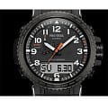 Аксессуар в спортивном стиле станет неотъемлемой частью экипировки опытного туриста, ведь он обладает полезными часовыми усложнениями. Выделяют барометр, цифровой компас, таймер обратного отсчёта, датчик измерения температуры окружающего воздуха -10°C /+60°C, высотомер с памятью данных, мировое времяМировое время Полезное часовое усложнение, отображающее время в основных городах и известных областях по всему миру, оно связано с часовыми поясами, удобно для путешественников и бизнесменов. , приём радиосигнала для настройки точного времени, хронографХронографФункция позволяет измерять отрезки времени с особой точностью: часы, минуты, секунды. Верным признаком хронографа является наличие на циферблате 3 дополнительных окошек-счётчиков., календарь. Японский кварцевый механизм получает энергию для работы от солнечной батареи – технология . Индикатор уровня заряда батареи. Минеральное стекло. Стальной безельБезельВнешний ободок, закрепляющий стекло. В спортивных часах так называется поворотное кольцо с делениями на циферблате, выполняет роль таймера – замеряет отрезки времени на шкале. Неподвижный безель – элемент декора. Однонаправленно вращающийся безель на дайверских часах позволяет фиксировать моменты погружения и выныривания на поверхность. с IP-покрытиемIP-покрытиеМетод ионного напыления. Демонстрирует повышенную устойчивость к истиранию, окислению и химическим веществам. Под воздействием высокого давления и температуры около 1500°C молекулы металла надёжно соединяются с частицами корпуса часов., устойчивым к износу. Аналоговый циферблат и дисплей со светодиодной подсветкойСветодиодная подсветкаСветодиодная или LED-подсветка обеспечивает появление яркого холодного свечения за счёт LED-элементов - маленьких лампочек. Они потребляют минимальное количество энергии, чаще всего можно встретить 1 светодиод, в нижней части циферблата.. Стрелки с подсветкой NeobriteПодсветка NeobriteИспользование светонакопительных составов на основе сульфида цинка или алюмината стронция, яркий свет можно наблюдать на протяжении 6-10 часов после «зарядки» часов около источника света.. Пластиковый ударопрочный корпусУдаропрочный корпусМеханизм заключён в корпус, выполненный из современных материалов, устойчивых к ударам, механическим повреждениям и падению с высоты: инновационный пластик, карбон, нержавеющая сталь, титан. и браслет. Водостойкость до 10 бар. Габариты: 50,5 x 47,2 x 13,3 мм.