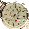 Белый циферблат с оригинальным узором и синими акцентами идеально смотрится в сочетании с цветом розового золота, такой оттенок был получен благодаря нанесению IP-покрытияIP-покрытиеМетод ионного напыления. Демонстрирует повышенную устойчивость к истиранию, окислению и химическим веществам. Под воздействием высокого давления и температуры около 1500°C молекулы металла надёжно соединяются с частицами корпуса часов.. В качестве декорирующих элементов использованы оригинальные кристаллы Swarovski с роскошным сиянием. Корпус и браслет выполнены из долговечной хирургической стали 316L. Минеральное стекло. Индикация даты и дня недели. Люминесцентная подсветкаЛюминесцентное покрытиеПозволяет считывать показания времени в темноте. Производители наносят на стрелки, часовые индексы, безель или поверхность циферблата светонакопительный состав, дающий холодное свечение.. Водозащита до 50 метров. Габариты: 41,4 x 45,3 x 11,2 мм.