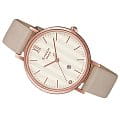 Тонкий кремовый ремешок из натуральной кожи стильно смотрится на запястье, брендовый аксессуар идеально сочетается как с повседневными джинсами, так и с вечерним платьем. Кварцевый механизм обеспечивает безупречную точность хода. Прочный корпус с IP-покрытиемIP-покрытиеМетод ионного напыления. Демонстрирует повышенную устойчивость к истиранию, окислению и химическим веществам. Под воздействием высокого давления и температуры около 1500°C молекулы металла надёжно соединяются с частицами корпуса часов. розового золота. Минеральное стекло. Апертура даты. Габариты:34x40,5мм х 6,4мм,.