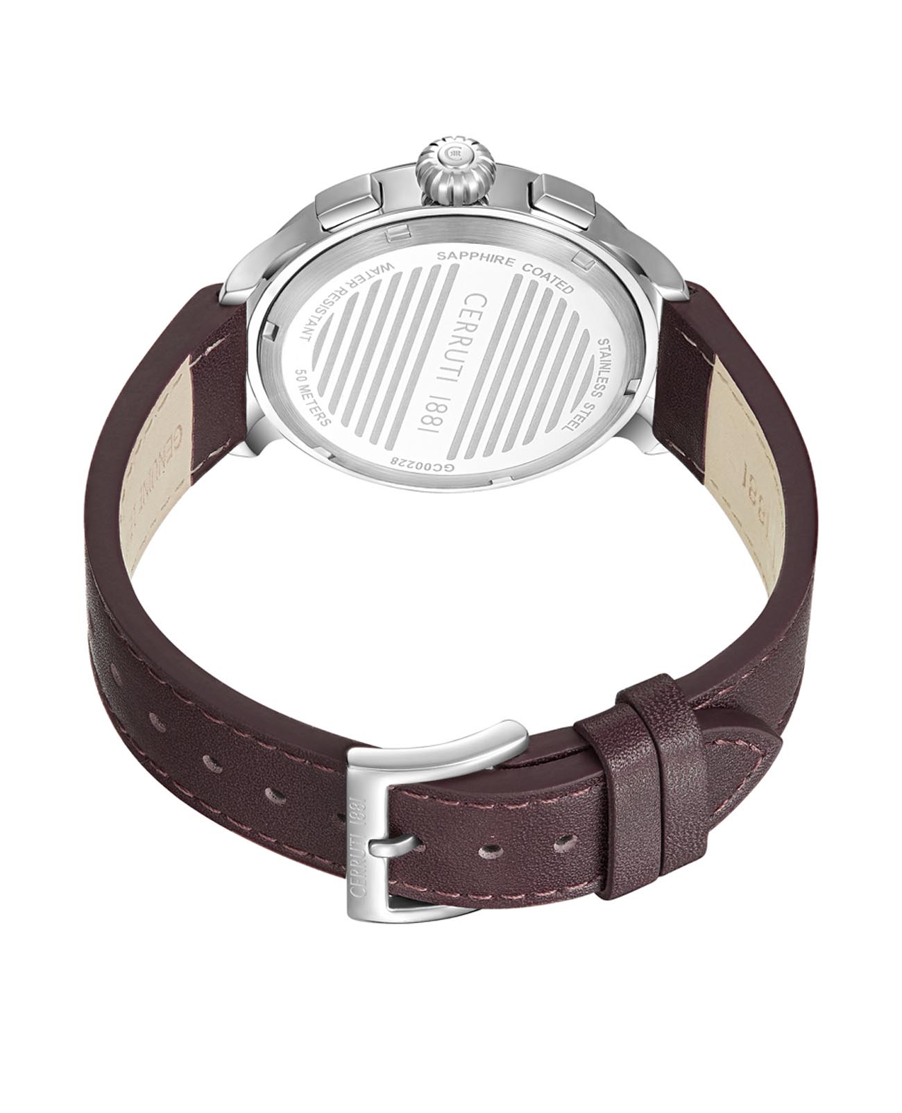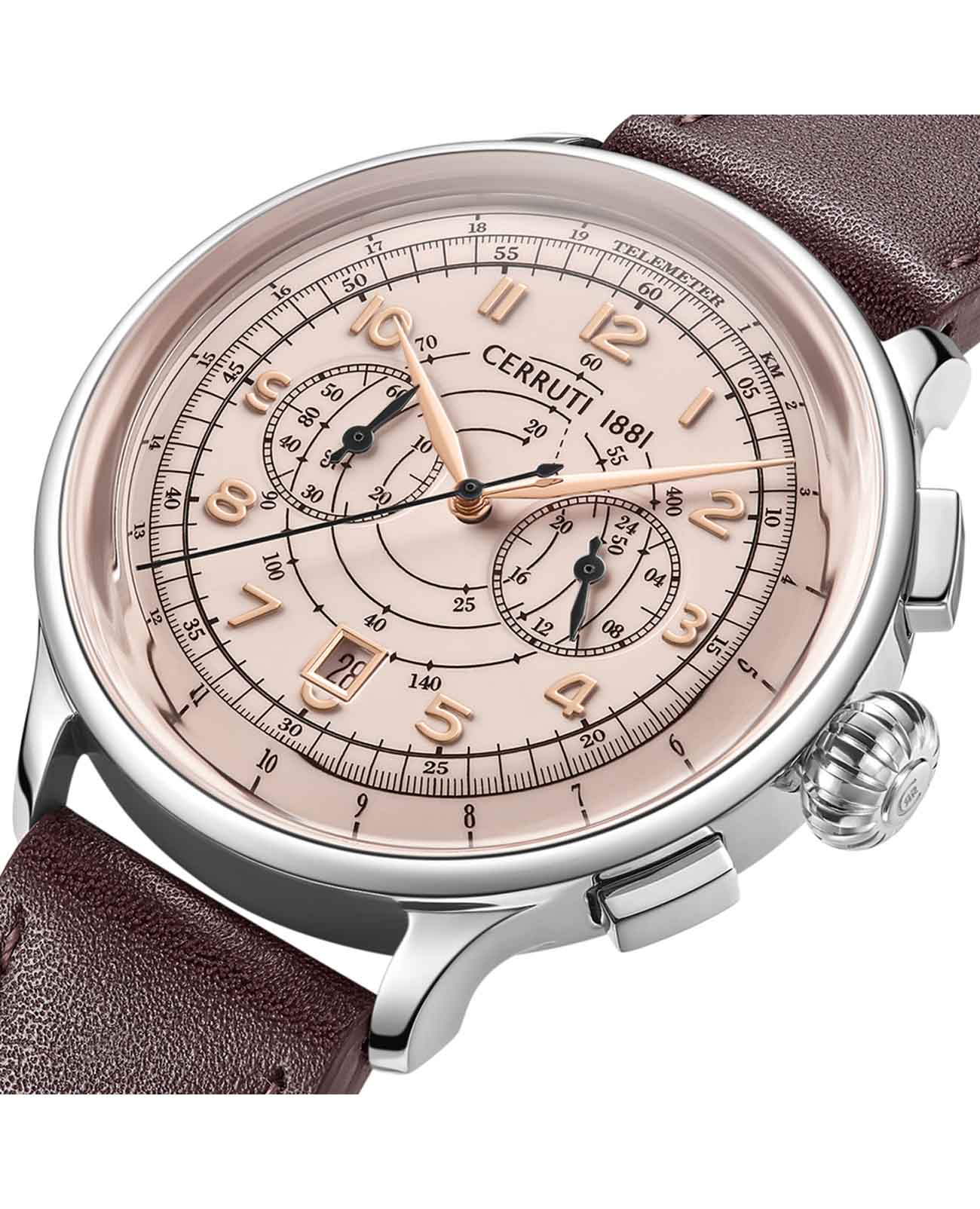 Французские мужские часы-хронографХронографФункция позволяет измерять отрезки времени с особой точностью: часы, минуты, секунды. Верным признаком хронографа является наличие на циферблате 3 дополнительных окошек-счётчиков. Cerruti 1881 Dervio CIWGC0022801, кварцевый механизм с высокой точностью. Минеральное стеклоМинеральное стеклоМинеральное стекло представляет собой искусственно выращенный минерал кварца. Такое стекло отличается особой устойчивостью к повреждениям и царапинам. Уступает по некоторым качествам сапфировому стеклу. устойчивое к мелким механическим повреждениям. Корпус часов изготовлен из стали. На циферблате расположены два дополнительных индикатора. Окошко даты находится в положении 6 часов. Класс водозащиты: 50 метров, позволит защитить корпус от случайных брызг или капель дождя. Кожаный ремешок на стандартной застежке.