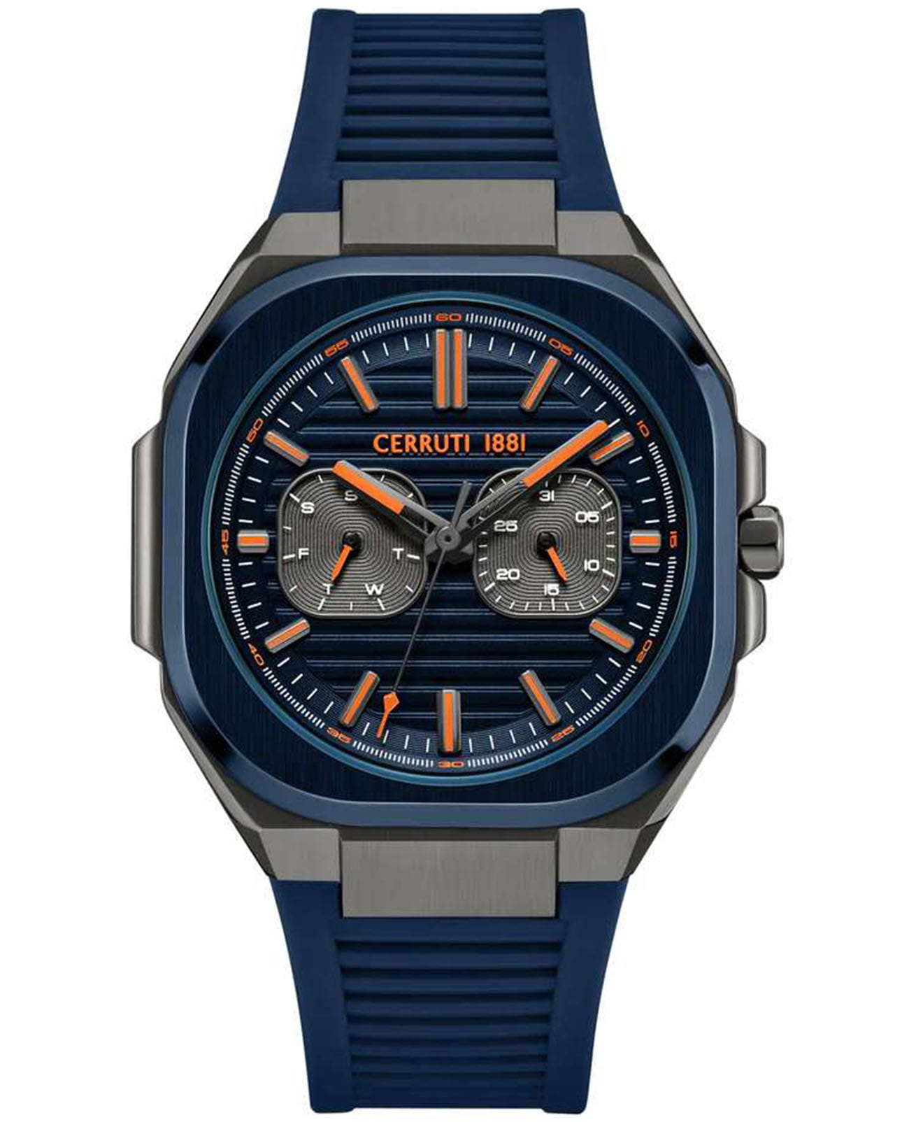 Мужские кварцевые часы Cerruti 1881 Leadri CIWGQ0073503 — лаконичный французский дизайн с практичным функционалом. Корпус из нержавеющей стали 316L с IP-покрытиемIP-покрытиеМетод ионного напыления. Демонстрирует повышенную устойчивость к истиранию, окислению и химическим веществам. Под воздействием высокого давления и температуры около 1500°C молекулы металла надёжно соединяются с частицами корпуса часов., диаметром 39 мм. Циферблат — синий, с штриховыми метками и индикацией даты, дня недели и месяца. Стекло — минеральноеМинеральное стеклоМинеральное стекло представляет собой искусственно выращенный минерал кварца. Такое стекло отличается особой устойчивостью к повреждениям и царапинам. Уступает по некоторым качествам сапфировому стеклу. с сапфировым покрытием. Стрелки и метки с люминесцентным покрытиемЛюминесцентное покрытиеПозволяет считывать показания времени в темноте. Производители наносят на стрелки, часовые индексы, безель или поверхность циферблата светонакопительный состав, дающий холодное свечение.. Ремешок силиконовый на стандартной застёжке. Водонепроницаемость 50 м.