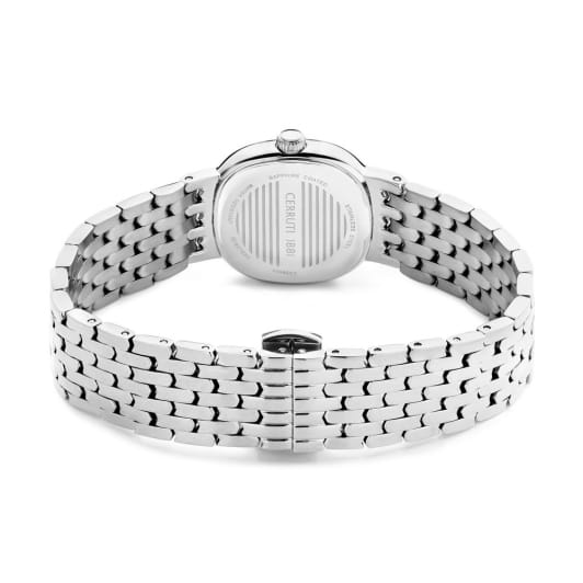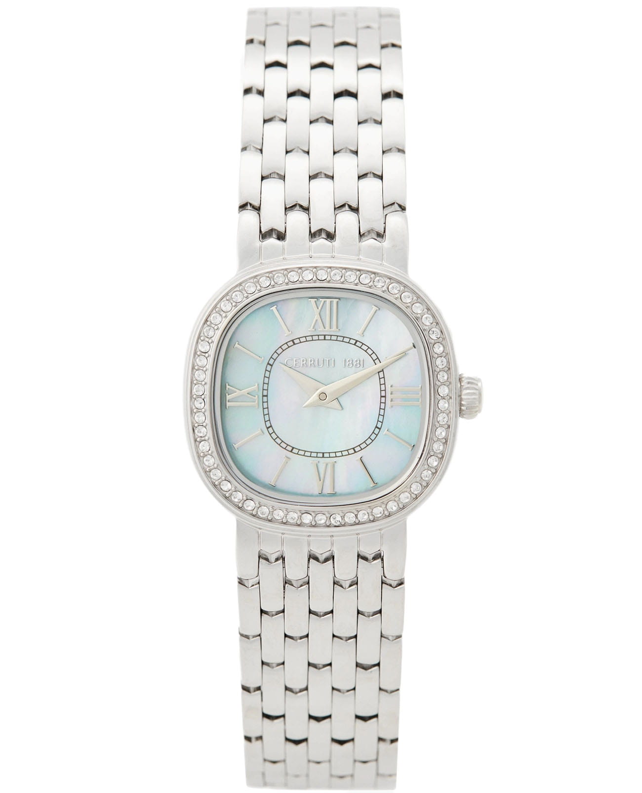 Французские женские часы с кристаллами Cerruti 1881 Gresta CIWLG0008605, кварцевый механизм с высокой точностью. Минеральное стеклоМинеральное стеклоМинеральное стекло представляет собой искусственно выращенный минерал кварца. Такое стекло отличается особой устойчивостью к повреждениям и царапинам. Уступает по некоторым качествам сапфировому стеклу. устойчивое к мелким механическим повреждениям. Корпус часов изготовлен из стали. БезельБезельВнешний ободок, закрепляющий стекло. В спортивных часах так называется поворотное кольцо с делениями на циферблате, выполняет роль таймера – замеряет отрезки времени на шкале. Неподвижный безель – элемент декора. Однонаправленно вращающийся безель на дайверских часах позволяет фиксировать моменты погружения и выныривания на поверхность. из стали украшен кристаллами. Циферблат модели выполнен с метками в виде римских цифр. Класс водозащиты: 30 метров, позволит защитить корпус от случайных брызг или капель дождя. Стальной браслет на застёжке «бабочка» с кнопкамиЗастёжка "бабочка"Такой вид застёжки дополняется предохранителями, помогающими избежать случайного раскрытия браслета. Обладают изящным исполнением. .