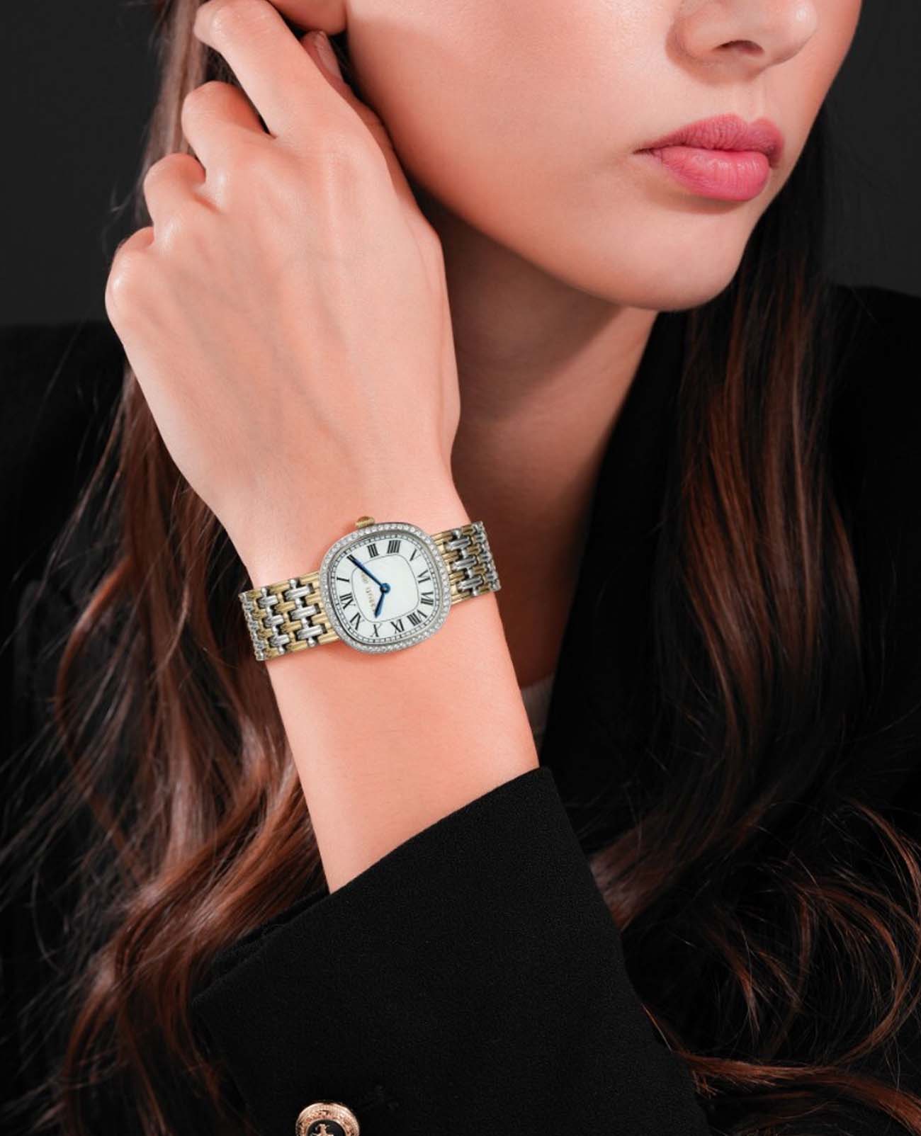 Французские женские часы с кристаллами Cerruti 1881 Gresta CIWLG0023802, кварцевый механизм с высокой точностью. Минеральное стеклоМинеральное стеклоМинеральное стекло представляет собой искусственно выращенный минерал кварца. Такое стекло отличается особой устойчивостью к повреждениям и царапинам. Уступает по некоторым качествам сапфировому стеклу. устойчивое к мелким механическим повреждениям. Корпус часов изготовлен из стали. БезельБезельВнешний ободок, закрепляющий стекло. В спортивных часах так называется поворотное кольцо с делениями на циферблате, выполняет роль таймера – замеряет отрезки времени на шкале. Неподвижный безель – элемент декора. Однонаправленно вращающийся безель на дайверских часах позволяет фиксировать моменты погружения и выныривания на поверхность. из стали украшен кристаллами. Циферблат модели выполнен с метками в виде римских цифр. Класс водозащиты: 30 метров, позволит защитить корпус от случайных брызг или капель дождя. Стальной браслет с частичным IP-покрытиемIP-покрытиеМетод ионного напыления. Демонстрирует повышенную устойчивость к истиранию, окислению и химическим веществам. Под воздействием высокого давления и температуры около 1500°C молекулы металла надёжно соединяются с частицами корпуса часов. на застёжке «бабочка» с кнопкамиЗастёжка "бабочка"Такой вид застёжки дополняется предохранителями, помогающими избежать случайного раскрытия браслета. Обладают изящным исполнением. .