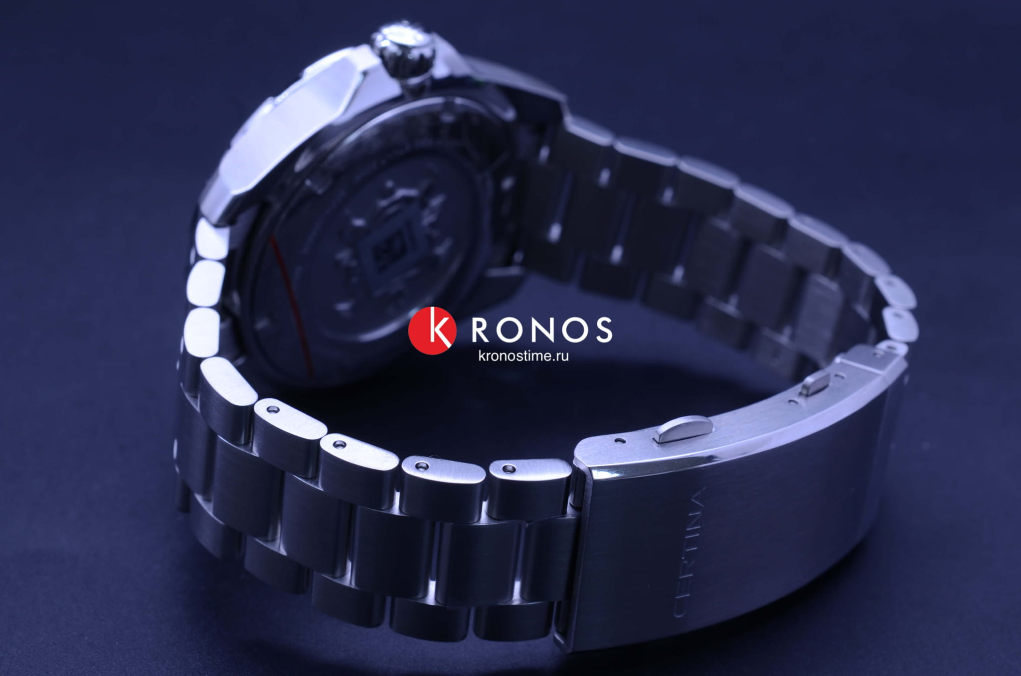 Это превосходная модель в серебристо-чёрной расцветке для тех, кто не готов соглашаться на меньшее. Наручные часы отличаются безупречными характеристиками по всем параметрам: ударопрочный корпусУдаропрочный корпусМеханизм заключён в корпус, выполненный из современных материалов, устойчивых к ударам, механическим повреждениям и падению с высоты: инновационный пластик, карбон, нержавеющая сталь, титан. из хирургической стали 316L, устойчивое к царапинам сапфировое стекло с антибликовой поверхностью, водостойкость до 30 бар, повышенная точность хода кварцевого швейцарского калибра ETA F07.412 Precidrive™Precidrive™Инновационный кварцевый механизм Certina. Часы, оснащённые этим швейцарским калибром, приравниваются к точности к сертифицированным хронометрам, точность хода составляет +/-10 секунд в год., подтверждённая сертификатом COSCСертификат COSCОфициальный сертификат, подтверждающий то, что часы ходят с особо высокой точностью. Для получения документа часы подвергаются тестовым испытаниям, разработанным швейцарским институтом тестирования хронометров COSC. Допустимая норма для механических часов -4/+6 секунд в день, для кварцевых моделей +/- 0,07 секунд в день.. Алюминиевый вращающийся безельБезельВнешний ободок, закрепляющий стекло. В спортивных часах так называется поворотное кольцо с делениями на циферблате, выполняет роль таймера – замеряет отрезки времени на шкале. Неподвижный безель – элемент декора. Однонаправленно вращающийся безель на дайверских часах позволяет фиксировать моменты погружения и выныривания на поверхность.. Закручивающиеся кнопки, заводная головка с системой защиты, задняя крышка. Индикатор EOLEOLПредставляет собой систему, уведомляющую владельца часов о необходимости замены элемента питания. За 2 недели до полного разряда батарейки секундная стрелка перестаёт ходить чётко и начинает перепрыгивать на 3-4 деления.. Апертура даты. Застёжка с фиксатором и удлинением для дайверовУдлинение для дайверовЗастёжка с удлинением для дайверов представляет собой безопасное крепление, которое позволяет надевать часы поверх гидрокостюма. Гибкая застёжка удлиняется на 1-2 миллиметра.. Диаметр корпуса: 43 мм.