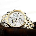 Швейцарские мужские часы Certina DS-8 Chronograph Moon Phase C033.450.22.031.00 из коллекции DS-8 привлекают оригинальным дизайном и абсолютной точностью хода. Модель, благодаря классической цветовой гамме и отсутствию броских деталей, станет универсальным аксессуаром к вашему образу. Брендовый хронографХронографФункция позволяет измерять отрезки времени с особой точностью: часы, минуты, секунды. Верным признаком хронографа является наличие на циферблате 3 дополнительных окошек-счётчиков. измеряет время с высокой точностью, что обеспечивает швейцарский кварцевый калибр ETA G10.962 Precidrive™Precidrive™Инновационный кварцевый механизм Certina. Часы, оснащённые этим швейцарским калибром, приравниваются к точности к сертифицированным хронометрам, точность хода составляет +/-10 секунд в год.. Браслет из нержавеющей стали. Сапфировое стекло с двухсторонним антибликовым покрытием. Корпус из нержавеющей стали 316L с PVD-покрытием.PVDУльтратонкое покрытие наносится в технике вакуумного напыления, сочетает в себе нитрид титана особой прочности со слоем золота или оксида хрома. Несёт в себе декоративную или защитную функцию.. Водостойкость 10 бар. Люминесцентная подсветкаЛюминесцентное покрытиеПозволяет считывать показания времени в темноте. Производители наносят на стрелки, часовые индексы, безель или поверхность циферблата светонакопительный состав, дающий холодное свечение.. Задняя крышка с гравировкой. Секундомер, дата, индикатор EOLEOLПредставляет собой систему, уведомляющую владельца часов о необходимости замены элемента питания. За 2 недели до полного разряда батарейки секундная стрелка перестаёт ходить чётко и начинает перепрыгивать на 3-4 деления., отображение лунных фаз. Диаметр корпуса: 42 мм. Производство и сборка: Швейцария.
