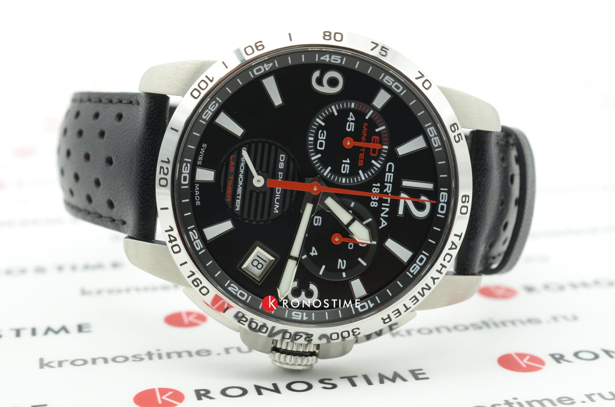 Наручные часы в спортивном стиле привлекают внимание красными деталями, что символизирует скоростное напряжение на гоночной трассе. Отличным дополнением стал кожаный ремешок с перфорацией из натурального материала. Кварцевый швейцарский механизм ETA G10.212 Precidrive™Precidrive™Инновационный кварцевый механизм Certina. Часы, оснащённые этим швейцарским калибром, приравниваются к точности к сертифицированным хронометрам, точность хода составляет +/-10 секунд в год. с повышенной точностью хода, подтверждённой сертификатом COSCСертификат COSCОфициальный сертификат, подтверждающий то, что часы ходят с особо высокой точностью. Для получения документа часы подвергаются тестовым испытаниям, разработанным швейцарским институтом тестирования хронометров COSC. Допустимая норма для механических часов -4/+6 секунд в день, для кварцевых моделей +/- 0,07 секунд в день.. Система DS ConceptDS ConceptDouble Security Concept, обозначает двойную надёжность и безупречную точность часов Certina. Двойная система защиты подразумевает обеспечение максимальной устойчивости к ударам и высоких показателей водонепроницаемости.. Двухстороннее антибликовое покрытие для стекла из сапфира. Стрелки и индексы с составом SuperLumiNovaЛюминесцентное покрытиеПозволяет считывать показания времени в темноте. Производители наносят на стрелки, часовые индексы, безель или поверхность циферблата светонакопительный состав, дающий холодное свечение.. Заводная головка с защитой. ХронографХронографФункция позволяет измерять отрезки времени с особой точностью: часы, минуты, секунды. Верным признаком хронографа является наличие на циферблате 3 дополнительных окошек-счётчиков., шкала тахиметраТахиметрРазмеченная шкала, располагается на ободке или безеле часов. Тахиметр позволяет рассчитать скорость на определённом участке пути, расстояние измеряется в километрах или милях., календарь, секундомер, индикатор EOLEOLПредставляет собой систему, уведомляющую владельца часов о необходимости замены элемента питания. За 2 недели до полного разряда батарейки секундная стрелка перестаёт ходить чётко и начинает перепрыгивать на 3-4 деления., Lap-функция измерения промежуточного времени (круга). Диаметр корпуса: 42 мм.