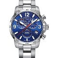 Наручные часы-хронометр сочетают в себе классический и спортивный стиль. Серебристые стальные браслет и ударопрочный корпусУдаропрочный корпусМеханизм заключён в корпус, выполненный из современных материалов, устойчивых к ударам, механическим повреждениям и падению с высоты: инновационный пластик, карбон, нержавеющая сталь, титан. привлекательно гармонируют с яркой деталью в виде синего циферблата. Высокая точность хода швейцарского кварцевого механизма ETA G10.962 Precidrive™Precidrive™Инновационный кварцевый механизм Certina. Часы, оснащённые этим швейцарским калибром, приравниваются к точности к сертифицированным хронометрам, точность хода составляет +/-10 секунд в год. (минимальная погрешность +/-10 секунд в год) подтверждается документом – сертификатом COSCСертификат COSCОфициальный сертификат, подтверждающий то, что часы ходят с особо высокой точностью. Для получения документа часы подвергаются тестовым испытаниям, разработанным швейцарским институтом тестирования хронометров COSC. Допустимая норма для механических часов -4/+6 секунд в день, для кварцевых моделей +/- 0,07 секунд в день.. Надпись DS ConceptDS ConceptDouble Security Concept, обозначает двойную надёжность и безупречную точность часов Certina. Двойная система защиты подразумевает обеспечение максимальной устойчивости к ударам и высоких показателей водонепроницаемости. свидетельствует о противоударности модели и повышенной водонепроницаемости 200 метров. Стекло из сапфира. Стрелки и метки с люминесцентным покрытиемЛюминесцентное покрытиеПозволяет считывать показания времени в темноте. Производители наносят на стрелки, часовые индексы, безель или поверхность циферблата светонакопительный состав, дающий холодное свечение.. Водостойкость 100 метров. Заводная головка с защитой. Секундомер, GMTGMTОтображение времени второго часового пояса.Такая функция особенно актуальна для путешественников и бизнесменов,которые общаются с людьми из разных стран,теперь вы всегда будете знать,какой час у вашего партнёра или близкого человека., отображение числа, индикатор EOLEOLПредставляет собой систему, уведомляющую владельца часов о необходимости замены элемента питания. За 2 недели до полного разряда батарейки секундная стрелка перестаёт ходить чётко и начинает перепрыгивать на 3-4 деления., высокоточный хронографХронографФункция позволяет измерять отрезки времени с особой точностью: часы, минуты, секунды. Верным признаком хронографа является наличие на циферблате 3 дополнительных окошек-счётчиков.. Диаметр корпуса: 42 мм.