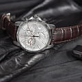 Аксессуар с серебристым циферблатом станет универсальным вариантом для делового или повседневного образа. Стильный хронографХронографФункция позволяет измерять отрезки времени с особой точностью: часы, минуты, секунды. Верным признаком хронографа является наличие на циферблате 3 дополнительных окошек-счётчиков. функционирует благодаря швейцарскому кварцевому механизму ETA G10.962 Precidrive™Precidrive™Инновационный кварцевый механизм Certina. Часы, оснащённые этим швейцарским калибром, приравниваются к точности к сертифицированным хронометрам, точность хода составляет +/-10 секунд в год.. Его абсолютная точность хода отмечена официальным сертификатом хронометра COSCСертификат COSCОфициальный сертификат, подтверждающий то, что часы ходят с особо высокой точностью. Для получения документа часы подвергаются тестовым испытаниям, разработанным швейцарским институтом тестирования хронометров COSC. Допустимая норма для механических часов -4/+6 секунд в день, для кварцевых моделей +/- 0,07 секунд в день.. Классический ремешок из натуральной кожи имеет поверхность с тиснением под кожу крокодила. Соблюдение DS ConceptDS ConceptDouble Security Concept, обозначает двойную надёжность и безупречную точность часов Certina. Двойная система защиты подразумевает обеспечение максимальной устойчивости к ударам и высоких показателей водонепроницаемости.. Сапфировое стекло с односторонним антибликовым покрытием. БезельБезельВнешний ободок, закрепляющий стекло. В спортивных часах так называется поворотное кольцо с делениями на циферблате, выполняет роль таймера – замеряет отрезки времени на шкале. Неподвижный безель – элемент декора. Однонаправленно вращающийся безель на дайверских часах позволяет фиксировать моменты погружения и выныривания на поверхность. со шкалой тахиметраТахиметрРазмеченная шкала, располагается на ободке или безеле часов. Тахиметр позволяет рассчитать скорость на определённом участке пути, расстояние измеряется в километрах или милях.. Водостойкость 100 метров. Люминесцентная подсветкаЛюминесцентное покрытиеПозволяет считывать показания времени в темноте. Производители наносят на стрелки, часовые индексы, безель или поверхность циферблата светонакопительный состав, дающий холодное свечение.. Защищённая заводная головка. Секундомер, GMTGMTОтображение времени второго часового пояса.Такая функция особенно актуальна для путешественников и бизнесменов,которые общаются с людьми из разных стран,теперь вы всегда будете знать,какой час у вашего партнёра или близкого человека., отображение числа, индикатор EOLEOLПредставляет собой систему, уведомляющую владельца часов о необходимости замены элемента питания. За 2 недели до полного разряда батарейки секундная стрелка перестаёт ходить чётко и начинает перепрыгивать на 3-4 деления.. Диаметр корпуса: 42 мм.