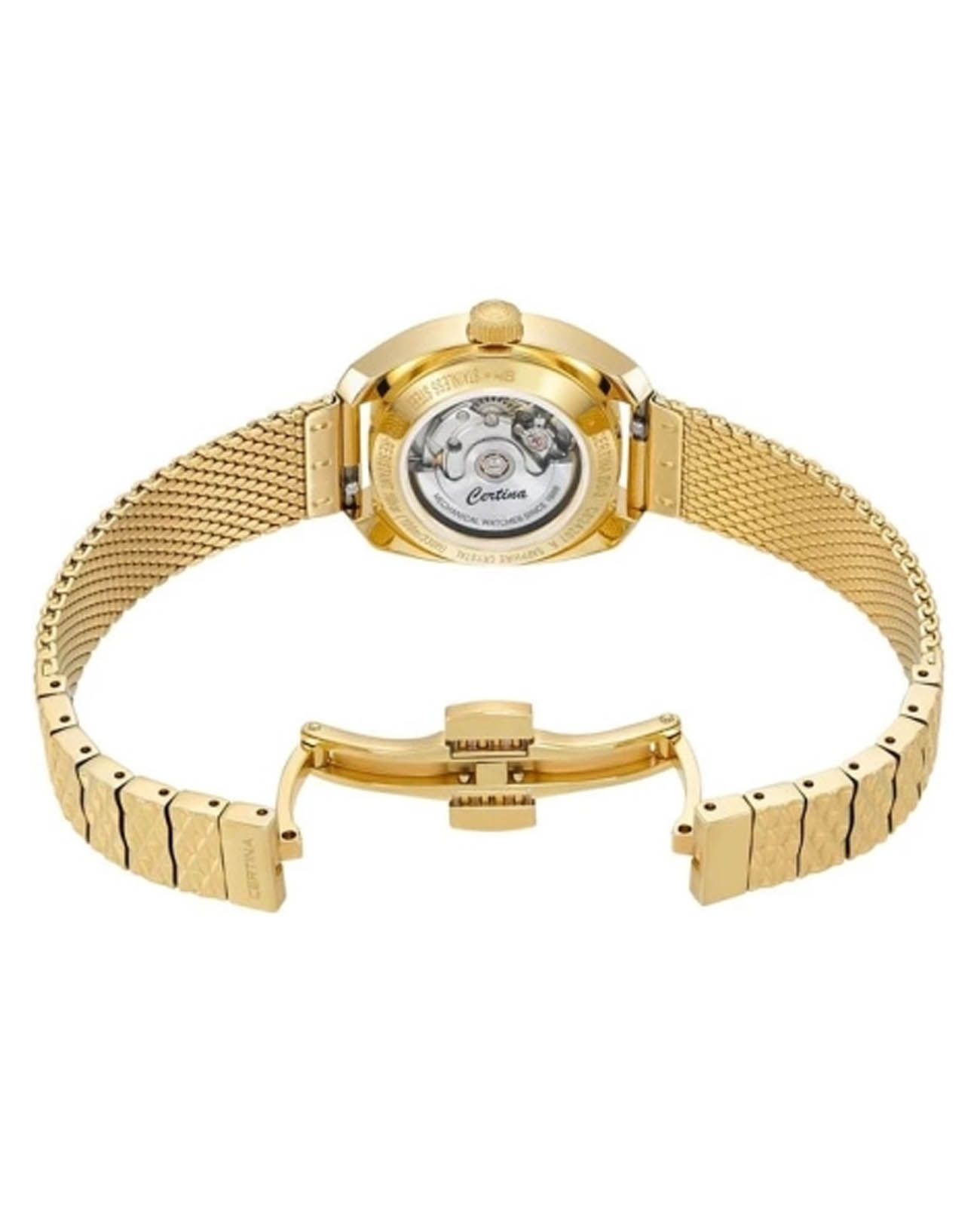 Женские швейцарские механические часы с автоподзаводом Certina DS-2 C0242071111100. Сапфировое стеклоСапфировое стеклоПрочный и надёжный материал из кристалла сапфира синтетического происхождения, характеризующийся особой твёрдостью и устойчивостью к царапинам и повреждениям. устойчивое к появлению царапин, обладающее высокой прозрачностью. Корпус изготовлен из нержавеющей стали с PVD-покрытиемPVDУльтратонкое покрытие наносится в технике вакуумного напыления, сочетает в себе нитрид титана особой прочности со слоем золота или оксида хрома. Несёт в себе декоративную или защитную функцию.. Стрелки с люминесцентным покрытиемЛюминесцентное покрытиеПозволяет считывать показания времени в темноте. Производители наносят на стрелки, часовые индексы, безель или поверхность циферблата светонакопительный состав, дающий холодное свечение. Superluminova. Окошко даты находится в положении 3 часа. Класс водозащиты: 100 метров, позволит плавать, нырять и заниматься другими водными видами спорта. Стальной браслет с PVD-покрытиемPVDУльтратонкое покрытие наносится в технике вакуумного напыления, сочетает в себе нитрид титана особой прочности со слоем золота или оксида хрома. Несёт в себе декоративную или защитную функцию. и с частичным миланским плетением на застёжке-бабочке с кнопкамиЗастёжка "бабочка"Такой вид застёжки дополняется предохранителями, помогающими избежать случайного раскрытия браслета. Обладают изящным исполнением. .