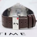 Коричневый кожаный ремешок с текстурой под крокодила и застёжкой-бабочкойЗастёжка "бабочка"Такой вид застёжки дополняется предохранителями, помогающими избежать случайного раскрытия браслета. Обладают изящным исполнением. подчёркивает утончённый стиль и комфортное ношение. Водонепроницаемость до 100 метров делает модель подходящей для активного образа жизни.