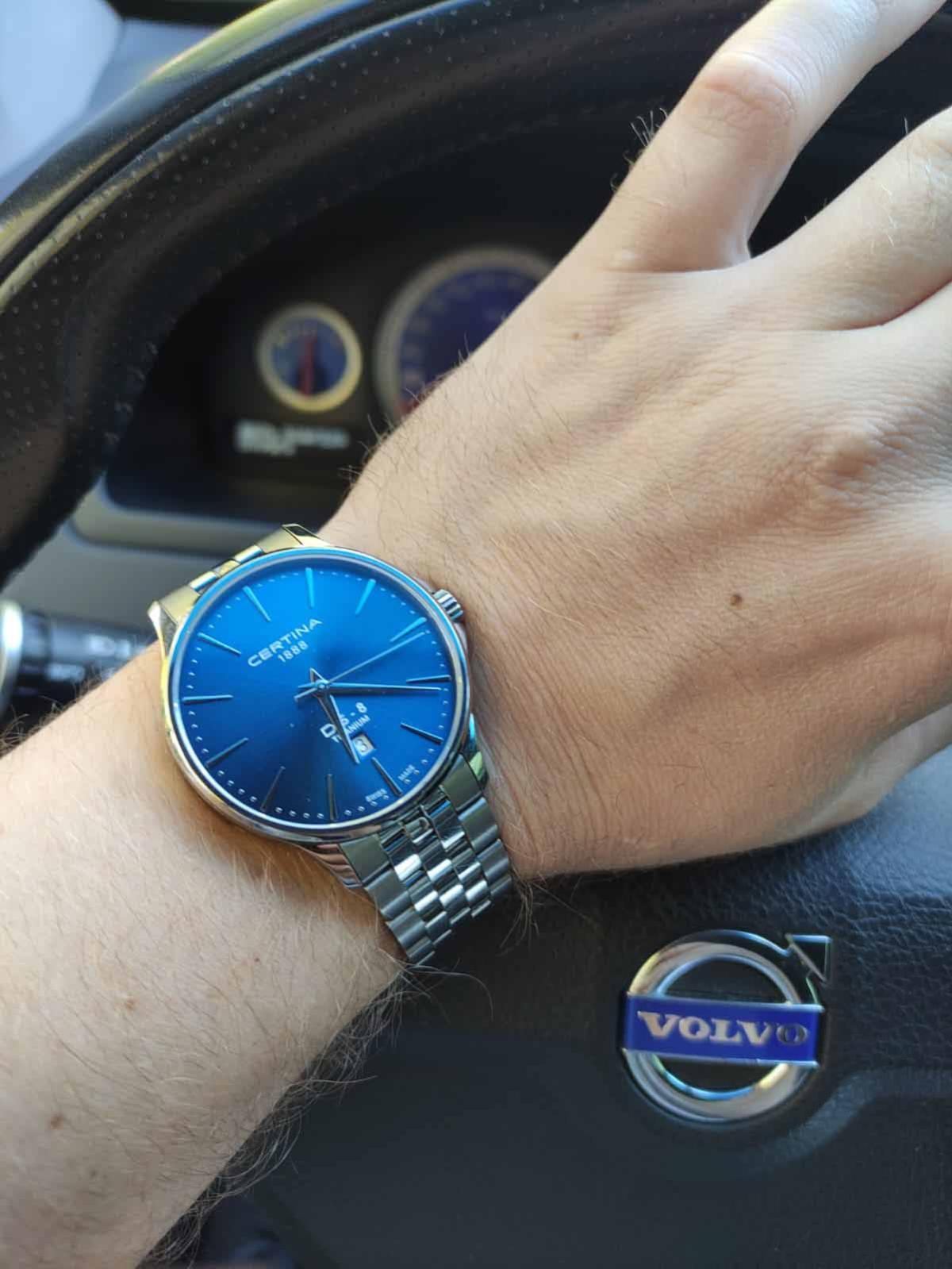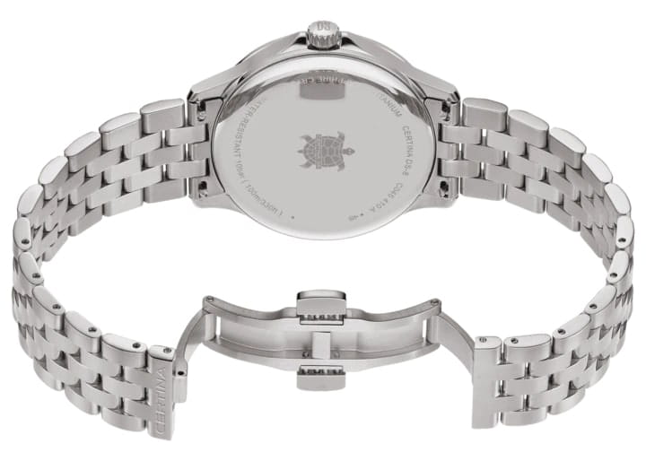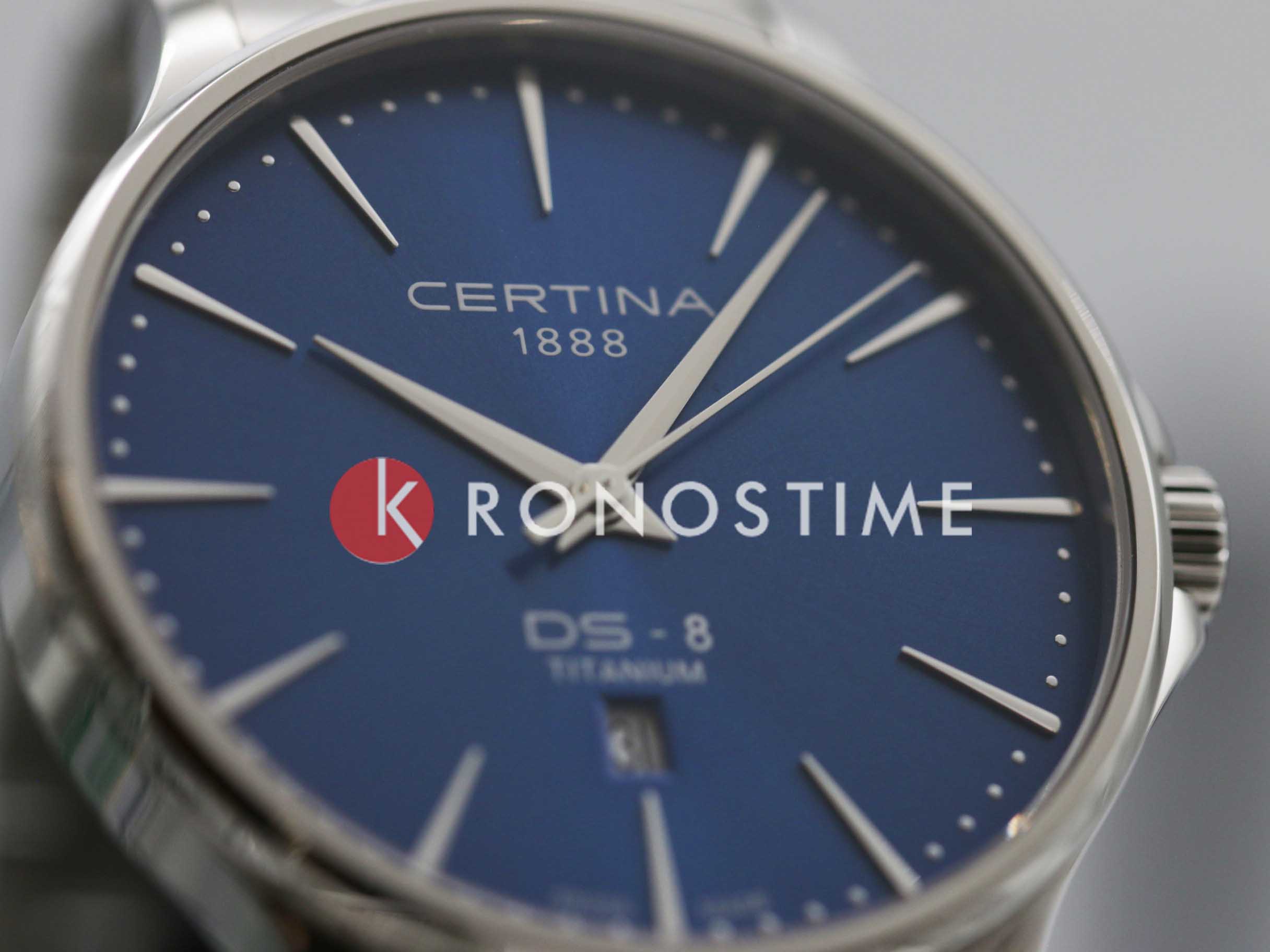 Швейцарские кварцевые мужские часы Certina DS-8 Gent C045.410.44.041.00 — это воплощение элегантности, прочности и точности. Модель выполнена из титана — лёгкого и гипоаллергенного материала, устойчивого к коррозии и повреждениям, что делает часы комфортными в носке и долговечными. Часы оснащены механизмом калибра ETA F05.412, обеспечивающим высокую точность хода, а также функцией индикатора разряда батареиEOLПредставляет собой систему, уведомляющую владельца часов о необходимости замены элемента питания. За 2 недели до полного разряда батарейки секундная стрелка перестаёт ходить чётко и начинает перепрыгивать на 3-4 деления., которая своевременно предупредит о необходимости замены элемента питания. На циферблате синего цвета чётко выделяются белые стрелки и метки, что гарантирует отличную читаемость. Окошко даты размещено в положении 3 часов, дополняя функциональность модели. Защиту циферблата обеспечивает сапфировое стеклоСапфировое стеклоПрочный и надёжный материал из кристалла сапфира синтетического происхождения, характеризующийся особой твёрдостью и устойчивостью к царапинам и повреждениям. с антибликовым покрытиемАнтибликовое покрытиеСлой оксида металла в 0,13-0,3 микрон, благодаря которому стекло часов не бликует и не отражает свет. Антибликовое покрытие уменьшает отражение света в 10 раз, обеспечивая отличную читаемость показателей циферблата., устойчивое к царапинам и обеспечивающее комфортное считывание информации при любом освещении. Завинчивающаяся заводная головка защищаетУдаропрочный корпусМеханизм заключён в корпус, выполненный из современных материалов, устойчивых к ударам, механическим повреждениям и падению с высоты: инновационный пластик, карбон, нержавеющая сталь, титан. механизм от случайных повреждений и пыли. Часы обладают водонепроницаемостью , что позволяет использовать их при плавании и других водных активностях. Толщина корпуса составляет 10,35 мм, а его диаметр — 40 мм, что делает модель идеально сбалансированной на запястье. Браслет из титана дополнен застёжкой-бабочкой с кнопкамиЗастёжка "бабочка"Такой вид застёжки дополняется предохранителями, помогающими избежать случайного раскрытия браслета. Обладают изящным исполнением. , обеспечивающей комфорт и уверенную фиксацию на руке. Такое сочетание материалов и дизайна подчёркивает строгий и современный стиль модели. Эти часы станут универсальным аксессуаром для тех, кто ценит точность, качество и лаконичный дизайн — идеальный выбор для уверенных в себе мужчин, следящих за своим образом и статусом.