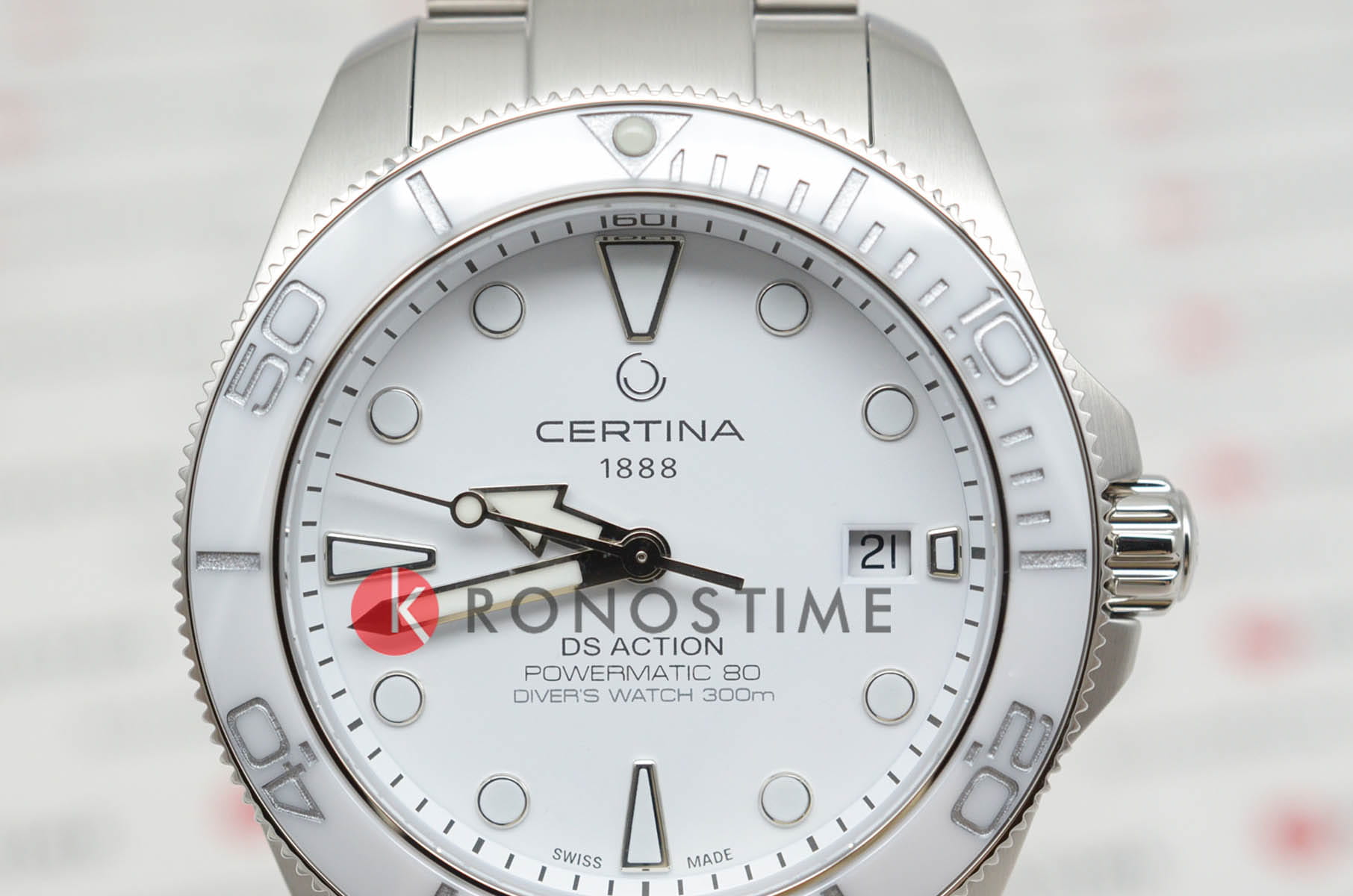 Мужские механические часы Certina DS Action C048.407.11.011.00 с автоматическим механизмом — это надёжный аксессуар, сочетающий в себе швейцарское качество и функциональность. Модель оснащена калибром POWERMATIC 80.611, обеспечивающим запас хода до 80 часов, что делает её удобной для повседневного использования. Корпус выполнен из нержавеющей стали диаметром 40,5 мм и толщиной 14,1 мм, а его поверхность защищена сапфировым стекломСапфировое стеклоПрочный и надёжный материал из кристалла сапфира синтетического происхождения, характеризующийся особой твёрдостью и устойчивостью к царапинам и повреждениям., устойчивым к царапинам и механическим повреждениям. Заводная головка с винтовым замком обеспечивает надёжную фиксацию на запястье. Браслет из стали серебристого цвета шириной 20 мм оснащён Раскладная застёжкаРаскладная застёжкаТакой тип застёжки используется только на браслетах из металла. Она никогда не раскрывается полностью, происходит разделение на 2 и более частей. Раскладывающая застёжка снизит вероятность потери часов к минимуму., обеспечивающей комфорт и надёжную фиксацию. Циферблат белого цвета дополнен точечными и батонными метками, а стрелки и индексы имеют Люминесцентное покрытиеЛюминесцентное покрытиеПозволяет считывать показания времени в темноте. Производители наносят на стрелки, часовые индексы, безель или поверхность циферблата светонакопительный состав, дающий холодное свечение., обеспечивающее отличную читаемость даже в условиях слабого освещения. Вращающийся безельБезельВнешний ободок, закрепляющий стекло. В спортивных часах так называется поворотное кольцо с делениями на циферблате, выполняет роль таймера – замеряет отрезки времени на шкале. Неподвижный безель – элемент декора. Однонаправленно вращающийся безель на дайверских часах позволяет фиксировать моменты погружения и выныривания на поверхность. с керамической вставкой добавляет модели спортивный характер. Часы водонепроницаемы более чем на 200 метров (, что позволяет использовать их при плавании и других водных активностях без глубокого погружения. Эти часы станут универсальным аксессуаром для тех, кто ценит сочетание стиля, функциональности и надёжности — идеальный выбор для повседневной носки и активного образа жизни.
