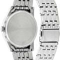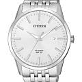 Часы Citizen BI5000-87A сочетают в себе японское качество, современный дизайн и надежность кварцевого механизма Citizen G111. Круглый корпус диаметром 39 мм выполнен из прочной нержавеющей стали, что обеспечивает долговечность и стильный внешний вид. Серебристый циферблат украшен метками в виде штрихов, а ткаже дополнен окошком календаря с отображением даты и дня недели в позиции «3 часа». Стрелки с люминесцентным покрытиемЛюминесцентное покрытиеПозволяет считывать показания времени в темноте. Производители наносят на стрелки, часовые индексы, безель или поверхность циферблата светонакопительный состав, дающий холодное свечение., что обеспечивает отличную видимость в темноте. Минеральное стеклоМинеральное стеклоМинеральное стекло представляет собой искусственно выращенный минерал кварца. Такое стекло отличается особой устойчивостью к повреждениям и царапинам. Уступает по некоторым качествам сапфировому стеклу. защищает циферблат от царапин и повреждений. Рифленая заводная головка подчеркивает элегантность и практичность модели. Стальной браслет оснащен надежной раскладной застёжкойРаскладная застёжкаТакой тип застёжки используется только на браслетах из металла. Она никогда не раскрывается полностью, происходит разделение на 2 и более частей. Раскладывающая застёжка снизит вероятность потери часов к минимуму., что обеспечивает комфортное ношение и подходит для любого случая. Водозащита до 50 метров позволяет не бояться случайных брызг и дождя.