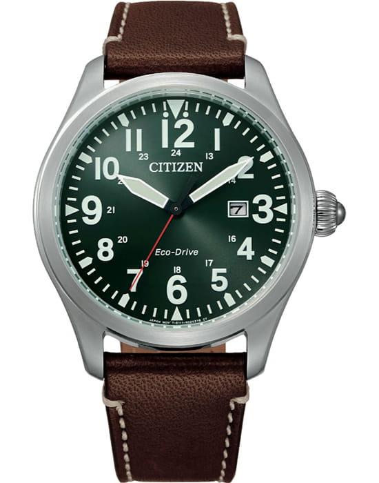 Мужские кварцевые часы с минеральным стекломМинеральное стеклоМинеральное стекло представляет собой искусственно выращенный минерал кварца. Такое стекло отличается особой устойчивостью к повреждениям и царапинам. Уступает по некоторым качествам сапфировому стеклу. Citizen Eco-Drive BM6838-25X. Корпус часов изготовлен из стали. Класс водозащиты: 100 метров, позволит плавать, нырять и заниматься другими водными видами спорта. Стрелки и метки с люминесцентным покрытиемЛюминесцентное покрытиеПозволяет считывать показания времени в темноте. Производители наносят на стрелки, часовые индексы, безель или поверхность циферблата светонакопительный состав, дающий холодное свечение.. Кожаный ремешок.