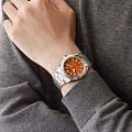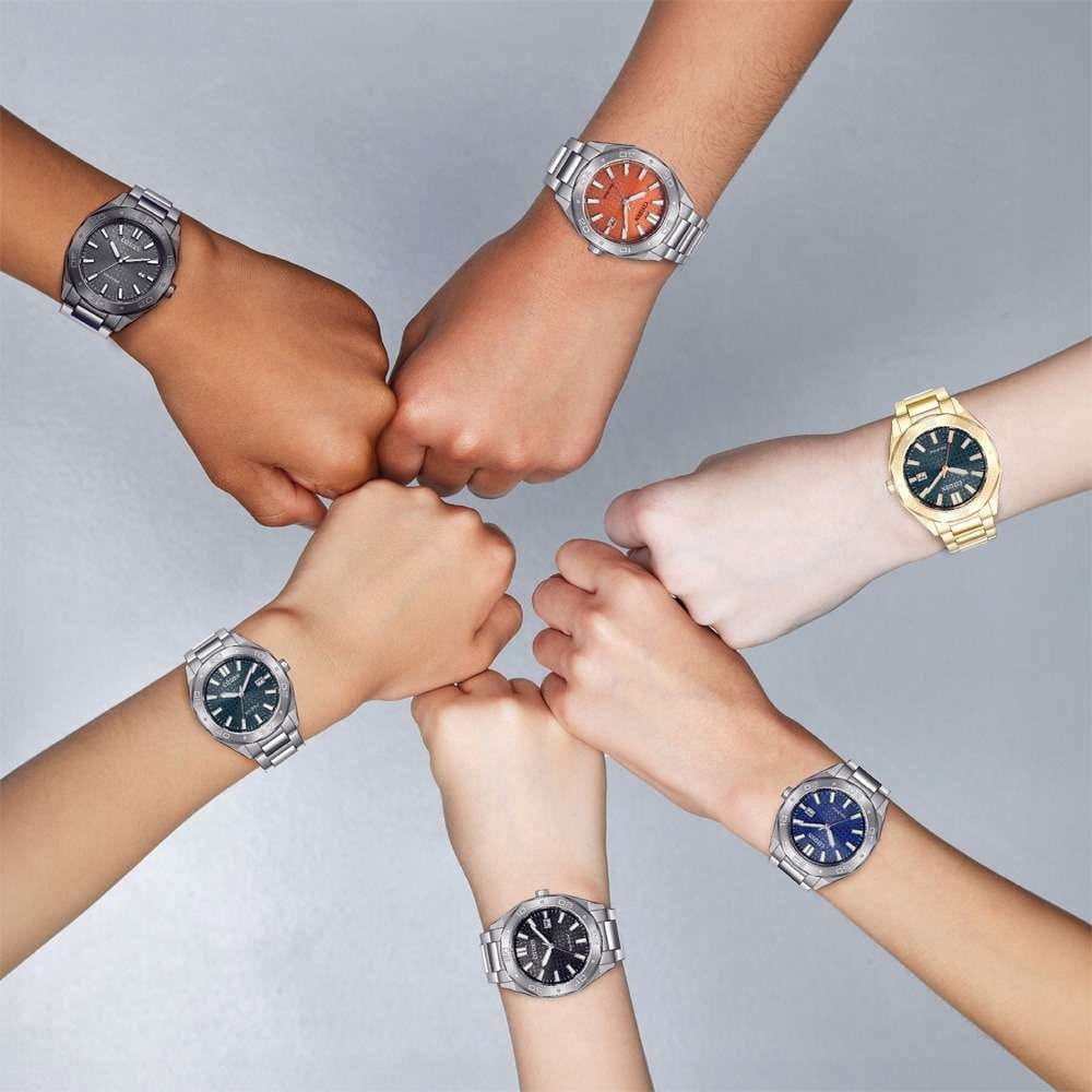 Часы Citizen BM7630-80Z сочетают в себе современный стиль и высокую функциональность. Японский кварцевый механизм калибра Citizen E111 обеспечивает точную работу и надежность, а инновационная система Eco-Drive позволяет забыть о замене батареек — питание осуществляется за счет солнечной энергии, с запасом хода до 180 дней. Корпус и браслет выполнены из прочной нержавеющей стали, что гарантирует долговечность и устойчивость к износу. На безелеБезельВнешний ободок, закрепляющий стекло. В спортивных часах так называется поворотное кольцо с делениями на циферблате, выполняет роль таймера – замеряет отрезки времени на шкале. Неподвижный безель – элемент декора. Однонаправленно вращающийся безель на дайверских часах позволяет фиксировать моменты погружения и выныривания на поверхность. выгравирована секундная и минутная шкала. Элегантный оранжевый циферблат со стрелками и метками с люминесцентным покрытиемЛюминесцентное покрытиеПозволяет считывать показания времени в темноте. Производители наносят на стрелки, часовые индексы, безель или поверхность циферблата светонакопительный состав, дающий холодное свечение. защищен устойчивым к царапинам минеральным стекломМинеральное стеклоМинеральное стекло представляет собой искусственно выращенный минерал кварца. Такое стекло отличается особой устойчивостью к повреждениям и царапинам. Уступает по некоторым качествам сапфировому стеклу. . Водозащита до 100 метров позволяет использовать часы при плавании и в повседневных ситуациях. Окно даты расположено на отметке «3 часа», а браслет оснащен удобной раскладной застёжкойРаскладная застёжкаТакой тип застёжки используется только на браслетах из металла. Она никогда не раскрывается полностью, происходит разделение на 2 и более частей. Раскладывающая застёжка снизит вероятность потери часов к минимуму.. Диаметр корпуса составляет 41 мм, толщина — 9,7 мм, ширина браслета — 22 мм, вес — 136 г. Эти часы станут отличным выбором для тех, кто ценит надежность, практичность и стильный внешний вид.