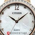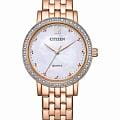 Часы Citizen EL3108-53D представляют собой элегантную модель, выполненную в Японии, сочетающую в себе современные технологии и утончённый дизайн. Корпус и браслет изготовлены из прочной нержавеющей стали с золотистым IP-покрытиемIP-покрытиеМетод ионного напыления. Демонстрирует повышенную устойчивость к истиранию, окислению и химическим веществам. Под воздействием высокого давления и температуры около 1500°C молекулы металла надёжно соединяются с частицами корпуса часов., что обеспечивает долговечность и привлекательный внешний вид. Диаметр корпуса составляет 31 мм, а толщина — всего 7 мм, что делает часы изящными и аккуратными на запястье. Особое внимание привлекает безельБезельВнешний ободок, закрепляющий стекло. В спортивных часах так называется поворотное кольцо с делениями на циферблате, выполняет роль таймера – замеряет отрезки времени на шкале. Неподвижный безель – элемент декора. Однонаправленно вращающийся безель на дайверских часах позволяет фиксировать моменты погружения и выныривания на поверхность., украшенный мерцающими кристаллами, которые придают часам особый шарм и изысканность. Надёжный кварцевый механизм гарантирует точность хода, а водозащита уровня WR 50 позволяет не снимать часы при мытье рук или во время дождя. Перламутровый циферблат украшен часовыми индексами в виде точек и цифр, а также оснащён центральными стрелками часов, минут и секунд для удобного считывания времени и кристаллами. Минеральное стеклоМинеральное стеклоМинеральное стекло представляет собой искусственно выращенный минерал кварца. Такое стекло отличается особой устойчивостью к повреждениям и царапинам. Уступает по некоторым качествам сапфировому стеклу. устойчиво к появлению мелких царапин, сохраняя прозрачность и презентабельный вид. Стальной браслет с золотистым IP-покрытиемIP-покрытиеМетод ионного напыления. Демонстрирует повышенную устойчивость к истиранию, окислению и химическим веществам. Под воздействием высокого давления и температуры около 1500°C молекулы металла надёжно соединяются с частицами корпуса часов. и раскладной застёжкойРаскладная застёжкаТакой тип застёжки используется только на браслетах из металла. Она никогда не раскрывается полностью, происходит разделение на 2 и более частей. Раскладывающая застёжка снизит вероятность потери часов к минимуму. надежно фиксирует часы на запястье, обеспечивая комфорт при ежедневном ношении.