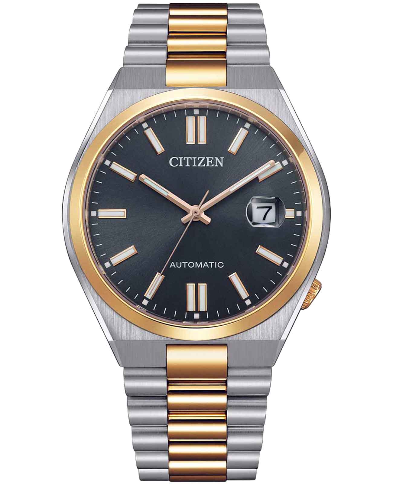 Citizen Tsuyosa NJ0154-80H - идеальное сочетание классического и современного дизайна. Корпус из нержавеющей стали диаметром 40 мм идеально сбалансирован. Сапфировое стеклоСапфировое стеклоПрочный и надёжный материал из кристалла сапфира синтетического происхождения, характеризующийся особой твёрдостью и устойчивостью к царапинам и повреждениям. с антибликовым покрытием обеспечивает отличную защиту циферблата от царапин. Механические часы с автоподзаводом. Стальной браслет на раскладной застёжкеРаскладная застёжкаТакой тип застёжки используется только на браслетах из металла. Она никогда не раскрывается полностью, происходит разделение на 2 и более частей. Раскладывающая застёжка снизит вероятность потери часов к минимуму. с частичным IP-покрытиемIP-покрытиеМетод ионного напыления. Демонстрирует повышенную устойчивость к истиранию, окислению и химическим веществам. Под воздействием высокого давления и температуры около 1500°C молекулы металла надёжно соединяются с частицами корпуса часов. идеально дополняют дизайн часов, обеспечивая комфортное ношение. Метки в виде штрихов. Окошко даты в положении 3 часа. Стрелки и метки с люминесцентным покрытиемЛюминесцентное покрытиеПозволяет считывать показания времени в темноте. Производители наносят на стрелки, часовые индексы, безель или поверхность циферблата светонакопительный состав, дающий холодное свечение.. В механизме 21 камень, частота 21600 полуколебаний в час. Запас хода 42 часа. Рифленая заводная головка находится в положении 4 часа. БезельБезельВнешний ободок, закрепляющий стекло. В спортивных часах так называется поворотное кольцо с делениями на циферблате, выполняет роль таймера – замеряет отрезки времени на шкале. Неподвижный безель – элемент декора. Однонаправленно вращающийся безель на дайверских часах позволяет фиксировать моменты погружения и выныривания на поверхность. с IP-покрытиемIP-покрытиеМетод ионного напыления. Демонстрирует повышенную устойчивость к истиранию, окислению и химическим веществам. Под воздействием высокого давления и температуры около 1500°C молекулы металла надёжно соединяются с частицами корпуса часов.. Циферблат с метками в виде штрихов выполнен по технологии Sunray (солнечные лучи). Завинчивающаяся прозрачная задняя крышка. Часы обладают водонепроницаемостью до 50WR, что делает их идеальными для повседневной носки.