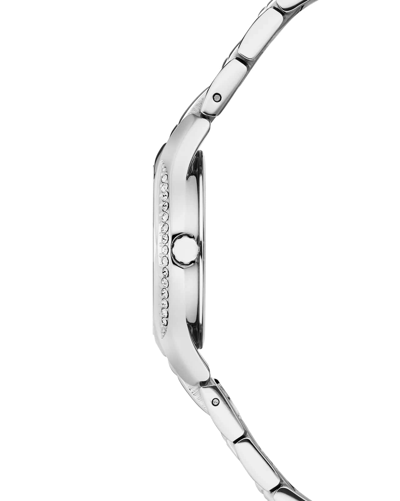 Женские наручные часы Sandara CO203.01 сочетают в себе элегантный дизайн и надежность современных технологий. Модель обладает круглым корпусом диаметром 28 мм, изготовленным из нержавеющей стали, что обеспечивает высокую устойчивость к внешним воздействиям. Браслет выполнен из нержавеющей стали с застежкой-бабочкойЗастёжка "бабочка"Такой вид застёжки дополняется предохранителями, помогающими избежать случайного раскрытия браслета. Обладают изящным исполнением. , которая отличается удобством использования и подходит для запястий любого размера благодаря своей посадке. Циферблат декорирован кристаллами, которые придают часам особый шик и неповторимый вид. Для защиты используется сапфировое стеклоСапфировое стеклоПрочный и надёжный материал из кристалла сапфира синтетического происхождения, характеризующийся особой твёрдостью и устойчивостью к царапинам и повреждениям., обеспечивающее прочную защиту от царапин. Часы работают на кварцевом механизме, что гарантирует точное время без необходимости подзаводки. Водонепроницаемость часов составляет 5 атмосфер, что позволяет использовать их в повседневной жизни, однако не рекомендуется для плавания или водных видов спорта.