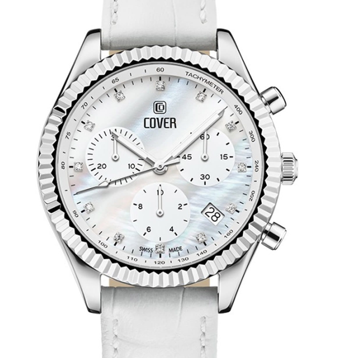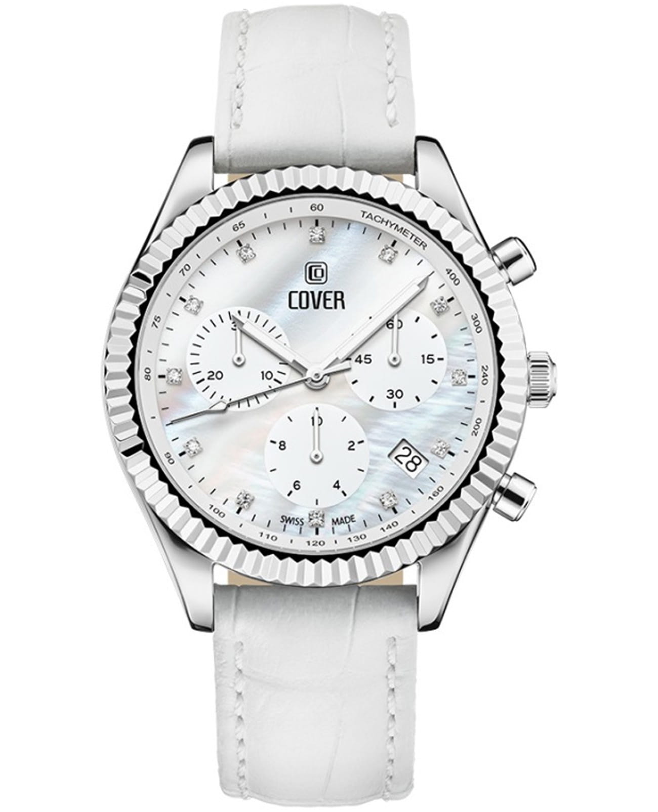 Элегантные женские часы Cover CO207.06 в спортивном стиле из коллекции Valentina Chronograph — это идеальное сочетание утонченности и функциональности. Оснащенные кварцевым механизмом с модулем хронографа Ronda 5040.D, они обеспечивают точность и надежность в каждом моменте. Молочно-белый перламутровый циферблат с 12 кристаллами Swarovski в роли часовых индексов придает часам изысканный вид, а три накопителя на «3», «6» и «9 часах» вместе с апертурой даты между «4» и «5 часами» добавляют функциональности. ТахиметрТахиметрРазмеченная шкала, располагается на ободке или безеле часов. Тахиметр позволяет рассчитать скорость на определённом участке пути, расстояние измеряется в километрах или милях.ическая шкала на внутреннем фланце позволяет легко отслеживать скорость, что делает эти часы не только стильными, но и практичными. Корпус диаметром 38 мм с рифленым ,безелемБезельВнешний ободок, закрепляющий стекло. В спортивных часах так называется поворотное кольцо с делениями на циферблате, выполняет роль таймера – замеряет отрезки времени на шкале. Неподвижный безель – элемент декора. Однонаправленно вращающийся безель на дайверских часах позволяет фиксировать моменты погружения и выныривания на поверхность. и кожаный ремешок подчеркивают современный дизайн и комфорт при ношении. С водонепроницаемостью до 50 м и сапфировым стекломСапфировое стеклоПрочный и надёжный материал из кристалла сапфира синтетического происхождения, характеризующийся особой твёрдостью и устойчивостью к царапинам и повреждениям., эти часы идеально подходят для активных женщин. Маркировка «Swiss Made» гарантирует высокое качество и долговечность. Гарантия на изделие составляет 2 года, что подтверждает надежность и уверенность в вашем выборе. Эти часы станут не только прекрасным дополнением к вашему образу, но и верным спутником в повседневной жизни. Кожаный ремешок на классической застежке.