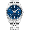 Часы COVER CO209.03 из коллекции Alston – элегантная модель швейцарского производства. Эти часы станут идеальным аксессуаром для элегантных дам, которые ценят стиль и качество. Корпус и браслет с раскладной застёжкойРаскладная застёжкаТакой тип застёжки используется только на браслетах из металла. Она никогда не раскрывается полностью, происходит разделение на 2 и более частей. Раскладывающая застёжка снизит вероятность потери часов к минимуму. изготовлены из нержавеющей стали, имеют диаметр 30 мм. На синем циферблате расположены накладные римские цифры. Надежное минеральное стеклоМинеральное стеклоМинеральное стекло представляет собой искусственно выращенный минерал кварца. Такое стекло отличается особой устойчивостью к повреждениям и царапинам. Уступает по некоторым качествам сапфировому стеклу. защищает часы от царапин и долго сохраняет первоначальный внешний вид. Они показывают день месяца, индикатор которых с накладной рамкой расположен в положении «3 часа». Водозащита 50 метров делает часы практичными для повседневного использования. На часовую, минутную стрелки нанесено люминесцентное покрытиеЛюминесцентное покрытиеПозволяет считывать показания времени в темноте. Производители наносят на стрелки, часовые индексы, безель или поверхность циферблата светонакопительный состав, дающий холодное свечение., которое светится в темноте, создавая необычное изображение. Эти часы идеально подойдут для светских раутов, бизнес-встреч и других важных событий, подчеркнут вашу элегантность и статус.