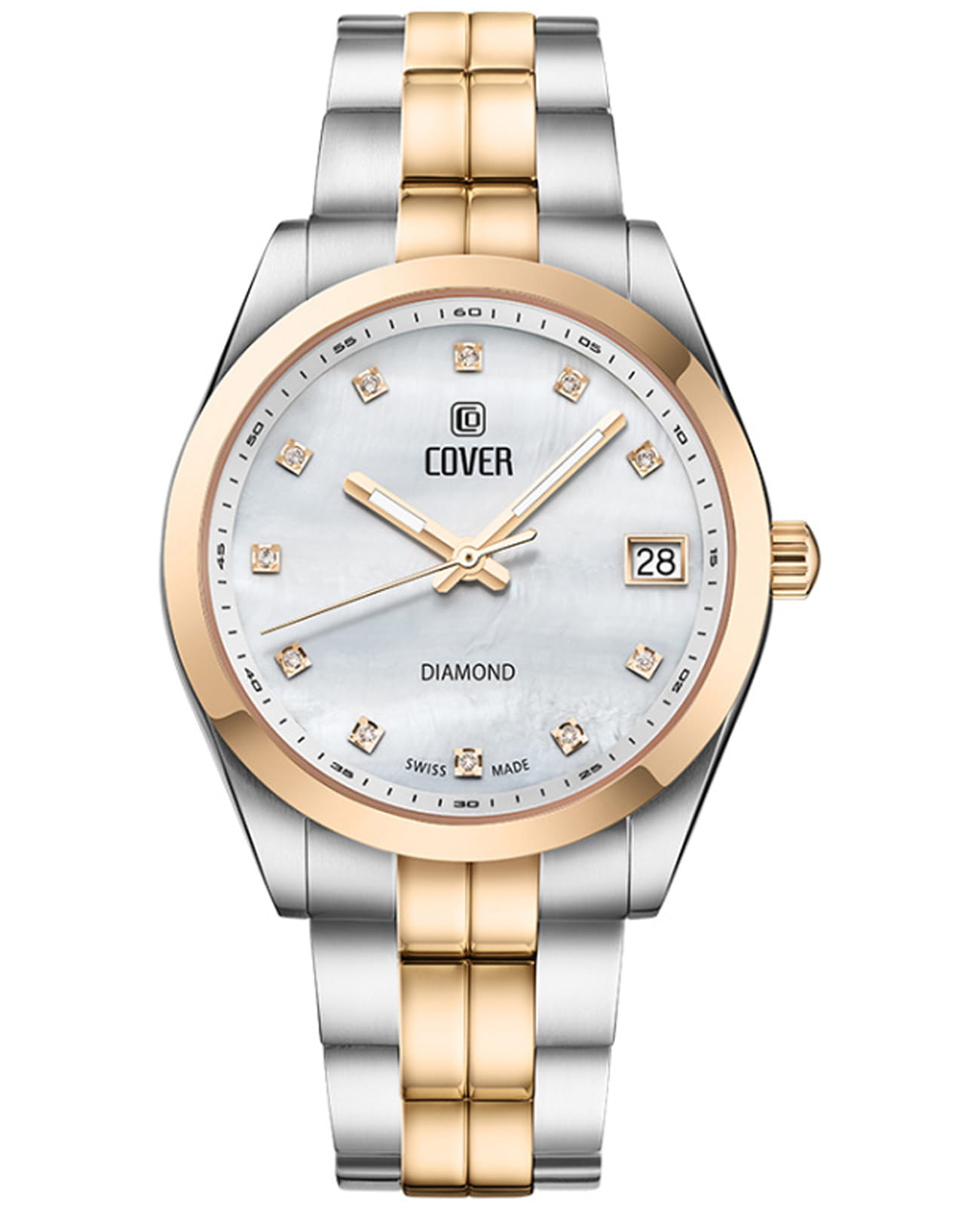 Представляем женские швейцарские часы Cover из коллекции Andara Diamond, модель CO210.04 — воплощение элегантности и роскоши. Эта уникальная модель украшена синтетическими бриллиантами, которые гармонично сочетаются с серебристым циферблатом, создавая ослепительную игру света на запястье. Стальной корпус диаметром 35 мм выполнен в пропорциональных размерах, что делает часы удобными для повседневного ношения. БезельБезельВнешний ободок, закрепляющий стекло. В спортивных часах так называется поворотное кольцо с делениями на циферблате, выполняет роль таймера – замеряет отрезки времени на шкале. Неподвижный безель – элемент декора. Однонаправленно вращающийся безель на дайверских часах позволяет фиксировать моменты погружения и выныривания на поверхность. с PVD-покрытиемPVDУльтратонкое покрытие наносится в технике вакуумного напыления, сочетает в себе нитрид титана особой прочности со слоем золота или оксида хрома. Несёт в себе декоративную или защитную функцию.. Циферблат защищен прочным сапфировым стекломСапфировое стеклоПрочный и надёжный материал из кристалла сапфира синтетического происхождения, характеризующийся особой твёрдостью и устойчивостью к царапинам и повреждениям., устойчивым к царапинам и обеспечивающим идеальную читаемость времени даже при ярком свете. Модель имеет водонепроницаемость до 10 АТМ, что позволяет использовать часы во время плавания или занятий водными видами спорта. Однако важно помнить, что во время погружения рекомендуется не нажимать кнопки и не пользоваться заводной головкой. Стальной браслет с частичным PVD-покрытиемPVDУльтратонкое покрытие наносится в технике вакуумного напыления, сочетает в себе нитрид титана особой прочности со слоем золота или оксида хрома. Несёт в себе декоративную или защитную функцию. на застёжке-бабочке с кнопкамиЗастёжка "бабочка"Такой вид застёжки дополняется предохранителями, помогающими избежать случайного раскрытия браслета. Обладают изящным исполнением. .
