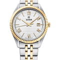 Cover Alston CO216.06 – элегантные мужские часы, сочетающие современный стиль и классическую элегантность. Корпус диаметром 40 мм выполнен из нержавеющей стали, что обеспечивает прочность и долговечность. Циферблат серебристого цвета с тонким треугольным узором придаёт часам изысканный вид, а его поверхность защищена минеральным стекломМинеральное стеклоМинеральное стекло представляет собой искусственно выращенный минерал кварца. Такое стекло отличается особой устойчивостью к повреждениям и царапинам. Уступает по некоторым качествам сапфировому стеклу.. Часы оснащены швейцарским кварцевым механизмом, обеспечивающим точный ход и надёжность. Функциональность дополняется окошком даты, расположенным на позиции «3 часа». Браслет и безельБезельВнешний ободок, закрепляющий стекло. В спортивных часах так называется поворотное кольцо с делениями на циферблате, выполняет роль таймера – замеряет отрезки времени на шкале. Неподвижный безель – элемент декора. Однонаправленно вращающийся безель на дайверских часах позволяет фиксировать моменты погружения и выныривания на поверхность. изготовлены из нержавеющей стали с PVDPVDУльтратонкое покрытие наносится в технике вакуумного напыления, сочетает в себе нитрид титана особой прочности со слоем золота или оксида хрома. Несёт в себе декоративную или защитную функцию. покрытием, также браслет оснащён раскладной застёжкойРаскладная застёжкаТакой тип застёжки используется только на браслетах из металла. Она никогда не раскрывается полностью, происходит разделение на 2 и более частей. Раскладывающая застёжка снизит вероятность потери часов к минимуму., обеспечивающей удобную и надёжную фиксацию на запястье. Водонепроницаемость до 50 метров (5 ATM) позволяет использовать часы в повседневной жизни, защищая их от случайных брызг и дождя.