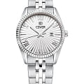 Часы COVER CO217.02 из коллекции Alston – элегантная модель швейцарского производства. Эти часы станут идеальным аксессуаром для элегантных дам, которые ценят стиль и качество. Корпус и браслет с раскладной застёжкойРаскладная застёжкаТакой тип застёжки используется только на браслетах из металла. Она никогда не раскрывается полностью, происходит разделение на 2 и более частей. Раскладывающая застёжка снизит вероятность потери часов к минимуму. изготовлены из нержавеющей стали, имеют диаметр 30 мм. На серебристом циферблате расположены накладные римские цифры. Надежное минеральное стеклоМинеральное стеклоМинеральное стекло представляет собой искусственно выращенный минерал кварца. Такое стекло отличается особой устойчивостью к повреждениям и царапинам. Уступает по некоторым качествам сапфировому стеклу. защищает часы от царапин и долго сохраняет первоначальный внешний вид. Они показывают день месяца, индикатор которых с накладной рамкой расположен в положении «3 часа». Водозащита 50 метров делает часы практичными для повседневного использования. На часовую, минутную стрелки нанесено люминесцентное покрытиеЛюминесцентное покрытиеПозволяет считывать показания времени в темноте. Производители наносят на стрелки, часовые индексы, безель или поверхность циферблата светонакопительный состав, дающий холодное свечение., которое светится в темноте, создавая необычное изображение. Эти часы идеально подойдут для светских раутов, бизнес-встреч и других важных событий, подчеркнут вашу элегантность и статус.