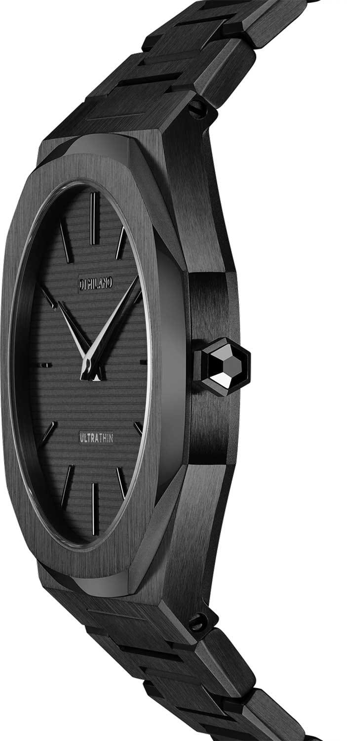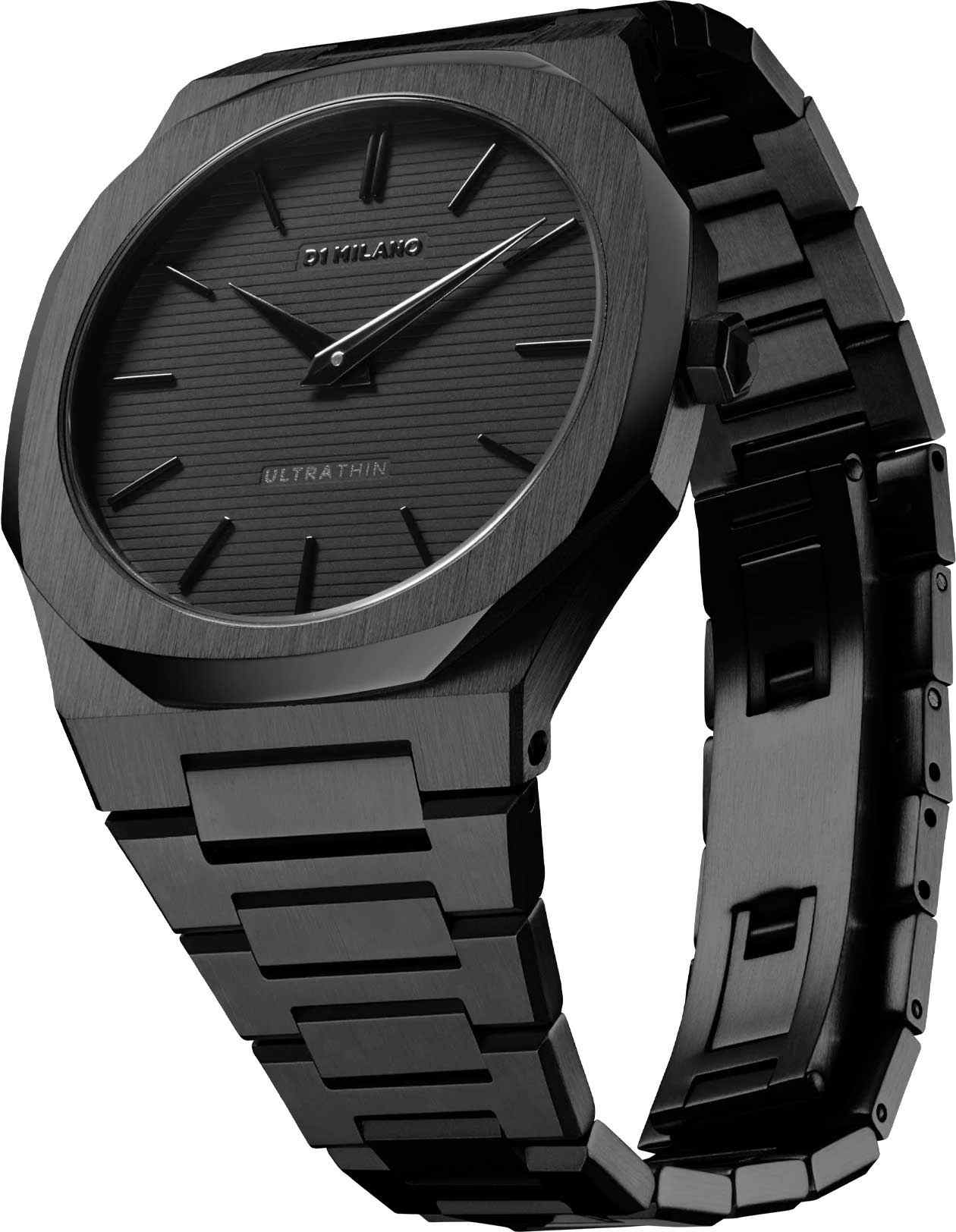 Часы D1 Milano UTBJSH — это уникальные кварцевые часы, которые подчеркнут ваш изысканный стиль. Эти наручные часы из коллекции Ultra Thin с эффектным монохромным дизайном станут выразительным акцентом вашего образа. Корпус диаметром 40 мм из нержавеющей стали с PVDPVDУльтратонкое покрытие наносится в технике вакуумного напыления, сочетает в себе нитрид титана особой прочности со слоем золота или оксида хрома. Несёт в себе декоративную или защитную функцию. покрытием придает часам современный и утонченный вид. Черный циферблат с метками в виде штрихов и такие же черные хроматические стрелки и индексы подчеркивают элегантность модели. Задняя крышка из нержавеющей стали закреплена на 8-х винтах и дополнена индивидуальным серийным номером, что подчеркивает уникальность каждого экземпляра. Стальной браслет с PVDPVDУльтратонкое покрытие наносится в технике вакуумного напыления, сочетает в себе нитрид титана особой прочности со слоем золота или оксида хрома. Несёт в себе декоративную или защитную функцию. покрытием и с раскладной застёжкойРаскладная застёжкаТакой тип застёжки используется только на браслетах из металла. Она никогда не раскрывается полностью, происходит разделение на 2 и более частей. Раскладывающая застёжка снизит вероятность потери часов к минимуму. обеспечивает надежность и комфорт в повседневном использовании. Сапфировое стеклоСапфировое стеклоПрочный и надёжный материал из кристалла сапфира синтетического происхождения, характеризующийся особой твёрдостью и устойчивостью к царапинам и повреждениям. с антибликовым покрытием защищает циферблат, а водозащита до 50WR делает эти часы практичным выбором для любых условий. Благодаря калибру Miyota 1L22, они отличаются точностью и надежностью. Эти итальянские часы представляют собой идеальное сочетание традиционного мастерства и инновационного подхода, воплощая в себе новый взгляд на классическую элегантность.