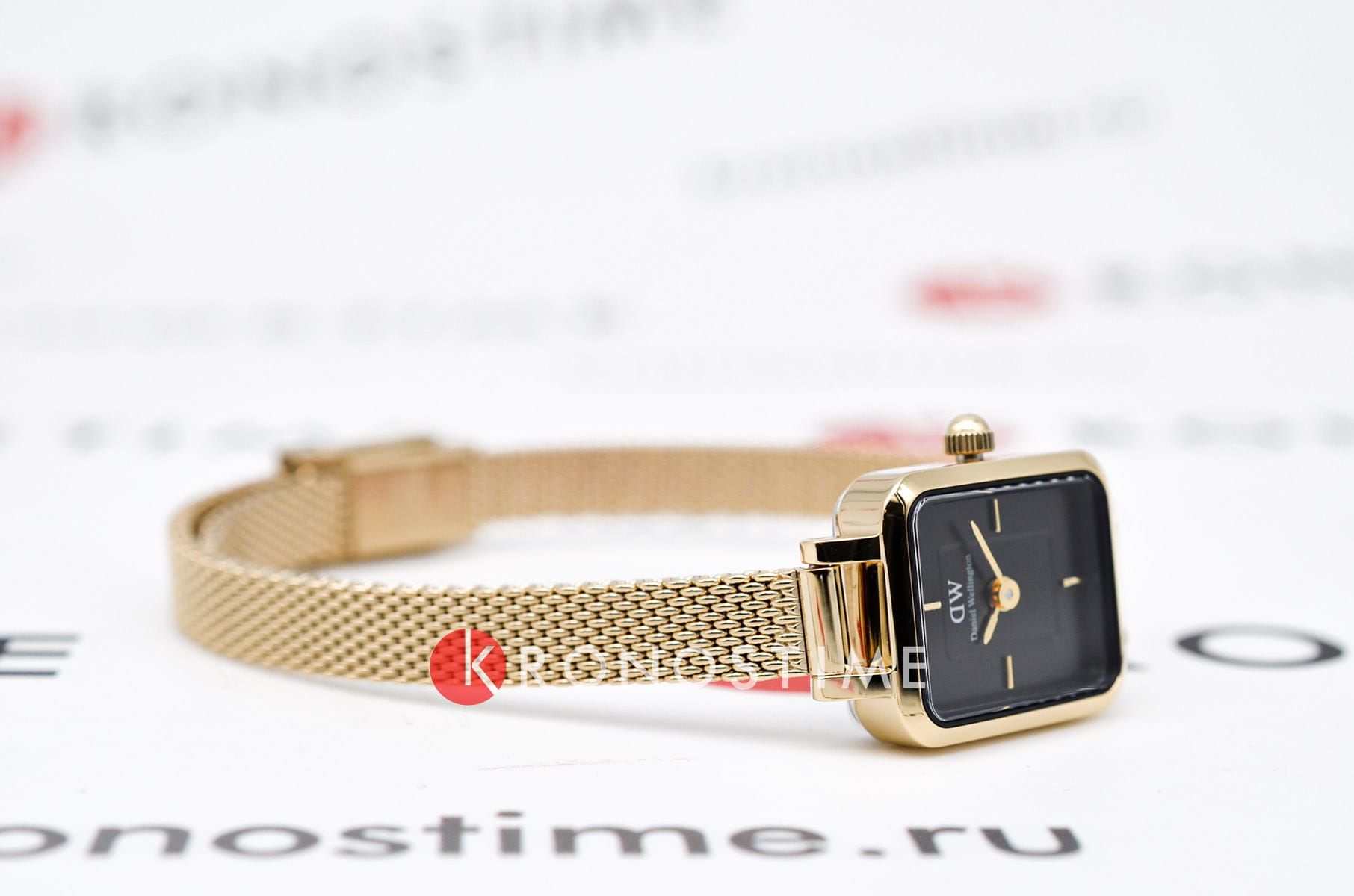 Женские наручные часы с минеральным стекломМинеральное стеклоМинеральное стекло представляет собой искусственно выращенный минерал кварца. Такое стекло отличается особой устойчивостью к повреждениям и царапинам. Уступает по некоторым качествам сапфировому стеклу. Daniel Wellington Quadro DW00100652, кварцевый механизм с высокой точностью. Корпус часов изготовлен из стали с PVD-покрытиемPVDУльтратонкое покрытие наносится в технике вакуумного напыления, сочетает в себе нитрид титана особой прочности со слоем золота или оксида хрома. Несёт в себе декоративную или защитную функцию.. Двухуровневый циферблат выполнен по технологии Sunray (солнечные лучи) и украшен фирменным логотипом Daniel Wellington. Накладные метки в виде штрихов. Рифленая заводная головка. Индивидуальный серийный номер. Класс водозащиты: 30 метров, позволит защитить корпус от случайных брызг или капель дождя. Стальной браслет миланского плетения с PVD-покрытиемPVDУльтратонкое покрытие наносится в технике вакуумного напыления, сочетает в себе нитрид титана особой прочности со слоем золота или оксида хрома. Несёт в себе декоративную или защитную функцию. на раскладном замкеРаскладной замокДанный вариант застежки используется только на часах с металлическим браслетом. Отличительная особенность такого крепления в том, что длина браслета становится универсальной и вы можете самостоятельно отрегулировать нужный вам размер – застежка просто двигается по браслету часов..