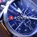 Аксессуар с синим циферблатом – идеальный вариант для левшей, заводная головка с кнопками расположились с левой стороны. Необычная апертура даты. Водостойкость 50 метров. Люминесцентная подсветкаЛюминесцентное покрытиеПозволяет считывать показания времени в темноте. Производители наносят на стрелки, часовые индексы, безель или поверхность циферблата светонакопительный состав, дающий холодное свечение.. Минеральное стекло. Кожаный ремешок. Секундомер, высокоточный хронографХронографФункция позволяет измерять отрезки времени с особой точностью: часы, минуты, секунды. Верным признаком хронографа является наличие на циферблате 3 дополнительных окошек-счётчиков..