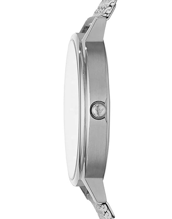 Женские наручные часы Emporio Armani обязательно должны быть в коллекции аксессуаров настоящей модницы, утончённая модель гармонично смотрится с любым стилем в одежде. Часы привлекают внимание благодаря оригинальному исполнению, традиции и классические элементы воплощаются в сочетании с современными модными трендами. Акцент сделан как на необычном оформлении циферблата, так и браслета. Такое исполнение позволяет использовать аксессуар для дополнения повседневного или вечернего образа, изделие станет прекрасным fashion- украшением для наряда. Надёжный корпус защищает кварцевый механизм с точностью хода +/- 20 сек/мес. Минеральное стекло устойчиво к образованию царапин.