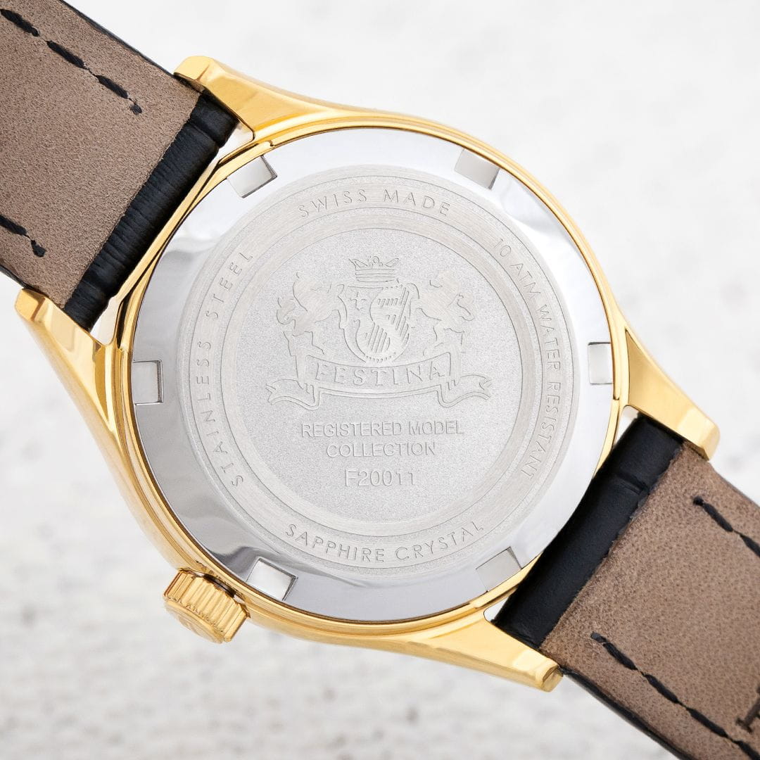 Сапфировое стеклоСапфировое стеклоПрочный и надёжный материал из кристалла сапфира синтетического происхождения, характеризующийся особой твёрдостью и устойчивостью к царапинам и повреждениям. устойчивое к появлению царапин, обладающее высокой прозрачностью. Циферблат декорирован узором. Класс водозащиты: 100 метров, позволит плавать, нырять и заниматься другими водными видами спорта. Корпус часов изготовлен из нержавеющей стали с PVDPVDУльтратонкое покрытие наносится в технике вакуумного напыления, сочетает в себе нитрид титана особой прочности со слоем золота или оксида хрома. Несёт в себе декоративную или защитную функцию. покрытием. Натуральной кожаный ремешок с классической застежкой, ширина ремешка 14мм. Рифленая заводная головка.