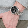 Эксклюзивный хронографХронографФункция позволяет измерять отрезки времени с особой точностью: часы, минуты, секунды. Верным признаком хронографа является наличие на циферблате 3 дополнительных окошек-счётчиков. с секундомеромСекундомерСекундоме́р — прибор, способный измерять интервалы времени с точностью до долей секунды., отличающийся продуманным дизайном и отделкой, придется по вкусу мужчинам, ценящим идеальное соотношение цены и качества.. Минеральное стеклоМинеральное стеклоМинеральное стекло представляет собой искусственно выращенный минерал кварца. Такое стекло отличается особой устойчивостью к повреждениям и царапинам. Уступает по некоторым качествам сапфировому стеклу. устойчивое к появлению царапин, обладающее высокой прозрачностью. Класс водозащиты: 50 метров, позволит защитить корпус от случайных брызг или капель дождя. Браслет с раскладной застёжкойРаскладная застёжкаТакой тип застёжки используется только на браслетах из металла. Она никогда не раскрывается полностью, происходит разделение на 2 и более частей. Раскладывающая застёжка снизит вероятность потери часов к минимуму..