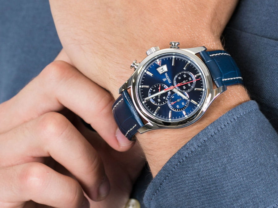 Эксклюзивный хронографХронографФункция позволяет измерять отрезки времени с особой точностью: часы, минуты, секунды. Верным признаком хронографа является наличие на циферблате 3 дополнительных окошек-счётчиков. с секундомеромСекундомерСекундоме́р — прибор, способный измерять интервалы времени с точностью до долей секунды., отличающийся продуманным дизайном и отделкой, придется по вкусу мужчинам, ценящим идеальное соотношение цены и качества.. Минеральное стеклоМинеральное стеклоМинеральное стекло представляет собой искусственно выращенный минерал кварца. Такое стекло отличается особой устойчивостью к повреждениям и царапинам. Уступает по некоторым качествам сапфировому стеклу. устойчивое к появлению царапин, обладающее высокой прозрачностью. Циферблат с люминесцентным покрытиемЛюминесцентное покрытиеПозволяет считывать показания времени в темноте. Производители наносят на стрелки, часовые индексы, безель или поверхность циферблата светонакопительный состав, дающий холодное свечение. стрелок и меток. Класс водозащиты: 100 метров, позволит защитить корпус от случайных брызг или капель дождя.