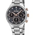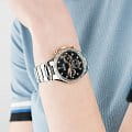 Яркий стиль и функциональность этих часов придутся по душе активной девушке. Кварцевый механизм с высокой точностью. Часы-хронографХронографФункция позволяет измерять отрезки времени с особой точностью: часы, минуты, секунды. Верным признаком хронографа является наличие на циферблате 3 дополнительных окошек-счётчиков. с минеральное стеклоМинеральное стеклоМинеральное стекло представляет собой искусственно выращенный минерал кварца. Такое стекло отличается особой устойчивостью к повреждениям и царапинам. Уступает по некоторым качествам сапфировому стеклу. устойчивое к появлению царапин, обладающее высокой прозрачностью. Стрелки с люминесцентным покрытиемЛюминесцентное покрытиеПозволяет считывать показания времени в темноте. Производители наносят на стрелки, часовые индексы, безель или поверхность циферблата светонакопительный состав, дающий холодное свечение.. Класс водозащиты: 50 метров, позволит защитить корпус от случайных брызг или капель дождя. Корпус часов изготовлен из нержавеющей стали. Браслет с раскладной застёжкойРаскладная застёжкаТакой тип застёжки используется только на браслетах из металла. Она никогда не раскрывается полностью, происходит разделение на 2 и более частей. Раскладывающая застёжка снизит вероятность потери часов к минимуму..