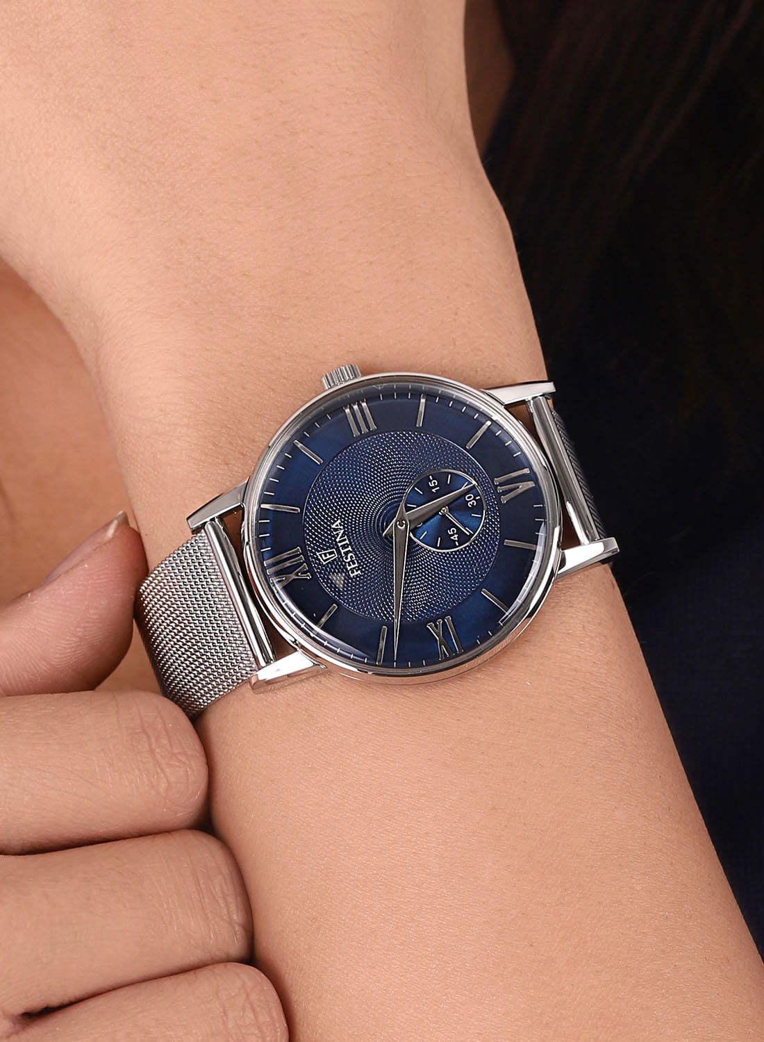 Яркий стиль и функциональность этих часов придутся по душе каждому. Кварцевый механизм с высокой точностью. Метки украшены кристаллами. Класс водозащиты: 30 метров, позволит защитить корпус от капель дождя. Корпус часов изготовлен из нержавеющей стали. Удобный и надежный стальной браслет миланского плетения с регулируемой застежкой.