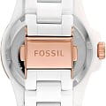 Женские наручные часы Fossil на браслете Fossil FB-01 CE1107, кварцевый механизм с высокой точностью. Класс водозащиты: 100 метров, позволит плавать, нырять и заниматься другими водными видами спорта. Стрелки с люминесцентным покрытиемЛюминесцентное покрытиеПозволяет считывать показания времени в темноте. Производители наносят на стрелки, часовые индексы, безель или поверхность циферблата светонакопительный состав, дающий холодное свечение.. Циферблат украшен кристаллами. Корпус часов изготовлен из стали. Керамический браслет с раскладной застёжкойРаскладная застёжкаТакой тип застёжки используется только на браслетах из металла. Она никогда не раскрывается полностью, происходит разделение на 2 и более частей. Раскладывающая застёжка снизит вероятность потери часов к минимуму..