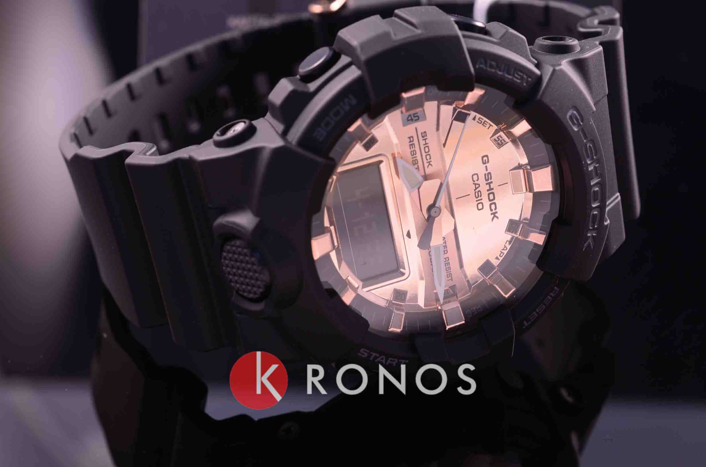 Дизайн модели умело комбинирует спортивные и fashion-элементы, чёрный матовый противоударный корпусУдаропрочный корпусМеханизм заключён в корпус, выполненный из современных материалов, устойчивых к ударам, механическим повреждениям и падению с высоты: инновационный пластик, карбон, нержавеющая сталь, титан. красиво обрамляет металлизированный циферблат цвета розового золота. По сравнению с часами серии GA-700, аксессуар получил уменьшенный размер корпуса, что положительно сказалось на комфортном ношении. Кварцевый калибр японского производства работает от батарейки, срок её службы составляет 3 года. Белая светодиодная подсветкаСветодиодная подсветкаСветодиодная или LED-подсветка обеспечивает появление яркого холодного свечения за счёт LED-элементов - маленьких лампочек. Они потребляют минимальное количество энергии, чаще всего можно встретить 1 светодиод, в нижней части циферблата. циферблата, стрелки с люминесцентным покрытиемЛюминесцентное покрытиеПозволяет считывать показания времени в темноте. Производители наносят на стрелки, часовые индексы, безель или поверхность циферблата светонакопительный состав, дающий холодное свечение.. Прочный полимерный ремешок. Водонепроницаемость 20 бар. Минеральное стекло. 12/24-часовое отображение времени. Секундомер с точностью в 1/100 секунды, мировое времяМировое время Полезное часовое усложнение, отображающее время в основных городах и известных областях по всему миру, оно связано с часовыми поясами, удобно для путешественников и бизнесменов. , таймер, будильник, календарь. Габариты: 54,1 x 48,6 x 15,5 мм.