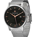 Мужские английские часы с минеральным стекломМинеральное стеклоМинеральное стекло представляет собой искусственно выращенный минерал кварца. Такое стекло отличается особой устойчивостью к повреждениям и царапинам. Уступает по некоторым качествам сапфировому стеклу. Greenwich Breeze GW 031.10.35, кварцевый механизм с высокой точностью. Корпус часов изготовлен из стали. Циферблат украшен метками в виде шртихов. Окошко даты в положении 3 часа. Класс водозащиты: 50 метров, позволит защитить корпус от случайных брызг или капель дождя. Стальной браслет миланского плетения на раскладном замкеРаскладной замокДанный вариант застежки используется только на часах с металлическим браслетом. Отличительная особенность такого крепления в том, что длина браслета становится универсальной и вы можете самостоятельно отрегулировать нужный вам размер – застежка просто двигается по браслету часов..