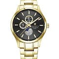 Мужские английские часы с хронографом Greenwich Moon Walker GW 058.20.31, кварцевый механизм с высокой точностью. Класс водозащиты: 100 метров, позволит плавать, нырять и заниматься другими водными видами спорта. Корпус часов изготовлен из стали, золотистого цвета.