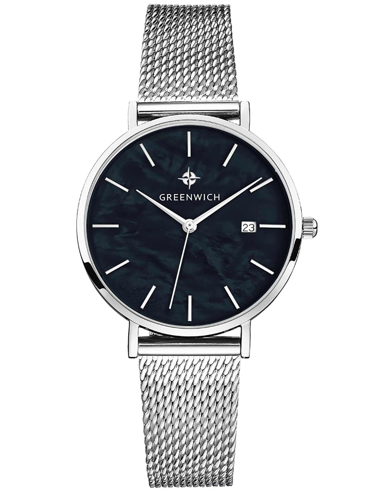Часы Greenwich GW 301.10.51 — это элегантная модель из коллекции Classic, созданная на основе кварцевого механизма для точного хода и надежности. Корпус и браслет изделия выполнены из высококачественной нержавеющей стали, что обеспечивает долговечность и износостойкость. Диаметр корпуса составляет 35 мм, что делает аксессуар изящным акцентом на запястье. Сапфировое стеклоСапфировое стеклоПрочный и надёжный материал из кристалла сапфира синтетического происхождения, характеризующийся особой твёрдостью и устойчивостью к царапинам и повреждениям. защищает синий перламутровый циферблат от царапин и повреждений. Часы оснащены функцией отображения даты, а водозащита до 3 атмосфер позволяет не беспокоиться о случайном попадании капель воды. Стильный дизайн и сдержанная классика делают эту модель отличным выбором для повседневного ношения. Часы оснащены литым металлическим браслетом с миланским плетением, который надежно фиксируется с помощью раскладного замкаРаскладной замокДанный вариант застежки используется только на часах с металлическим браслетом. Отличительная особенность такого крепления в том, что длина браслета становится универсальной и вы можете самостоятельно отрегулировать нужный вам размер – застежка просто двигается по браслету часов., предотвращающей случайное раскрытие. Часы произведены в Швейцарии и сопровождаются официальной гарантией на 24 месяца.
