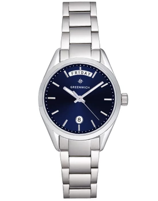 Мужские кварцевые часы с минеральным стекломМинеральное стеклоМинеральное стекло представляет собой искусственно выращенный минерал кварца. Такое стекло отличается особой устойчивостью к повреждениям и царапинам. Уступает по некоторым качествам сапфировому стеклу. Greenwich GW 351.10.36. Корпус часов изготовлен из стали . Стрелки с люминесцентным покрытиемЛюминесцентное покрытиеПозволяет считывать показания времени в темноте. Производители наносят на стрелки, часовые индексы, безель или поверхность циферблата светонакопительный состав, дающий холодное свечение.. Класс водозащиты: 50 метров, позволит защитить корпус от случайных брызг или капель дождя. Стальной браслет на раскладной застёжкеРаскладная застёжкаТакой тип застёжки используется только на браслетах из металла. Она никогда не раскрывается полностью, происходит разделение на 2 и более частей. Раскладывающая застёжка снизит вероятность потери часов к минимуму..Окошко даты находится в положении 6 часа.