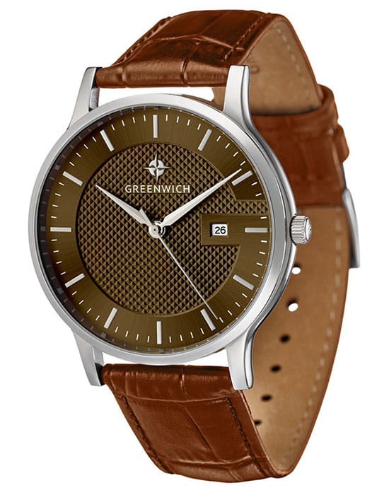 Мужские наручные часы Greenwich GW 031.12.30 представляют собой классический вариант для повседневной носки. Циферблат украшается брендовым логотипом, изображающим Розу Ветров. Эмблема мореплавательского духа символизирует удачу, стремление достигнуть поставленной цели. Часы характеризуются традиционными формами, лаконичным исполнением, что делает модель элегантным дополнением к деловому костюму. Надёжный корпус из нержавеющей стали спасает японский механизм от повреждений и ударов. Минеральное стекло отличается устойчивостью к образованию царапин на поверхности.